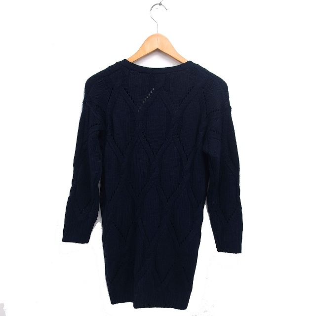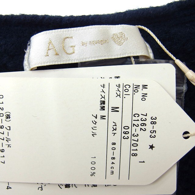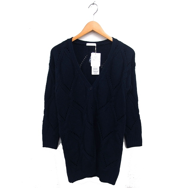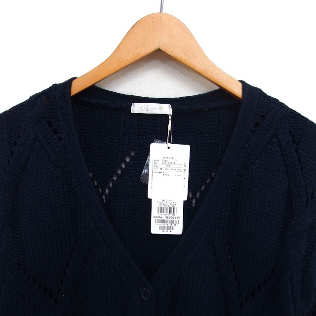 未使用品 エージーバイアクアガール AG by aquagirl タグ付き カーディガン ニット リブ 透かし編み ワイド 長袖 M 紺 ネイビー /NT13