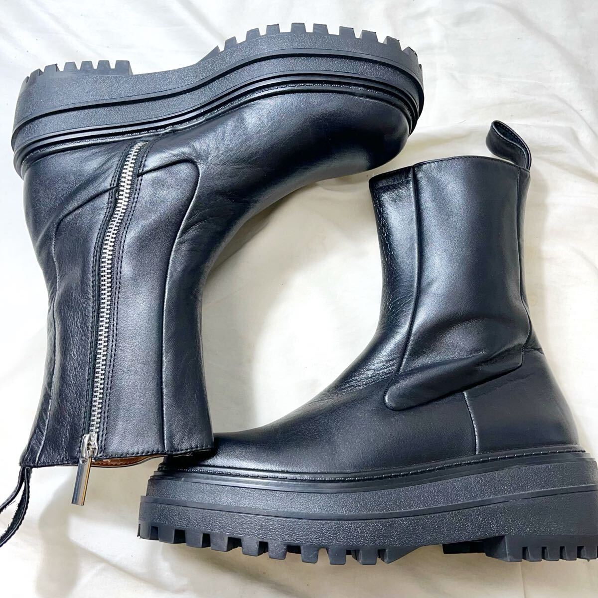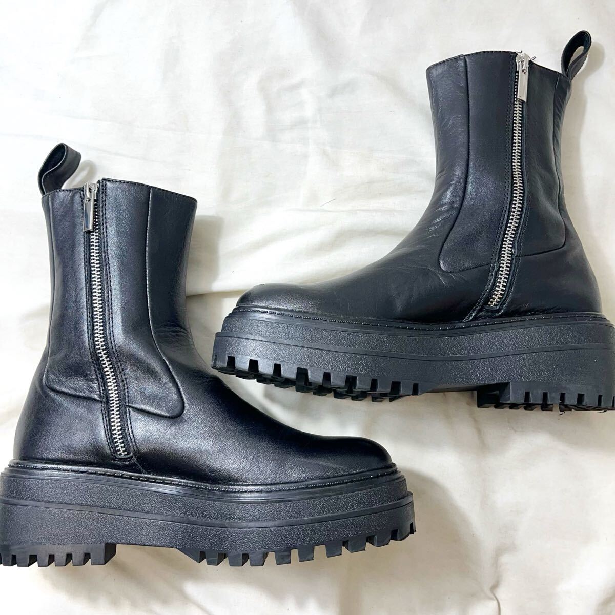 ZARA / ザラ 厚底ラグソール サイドジップ ショートブーツ