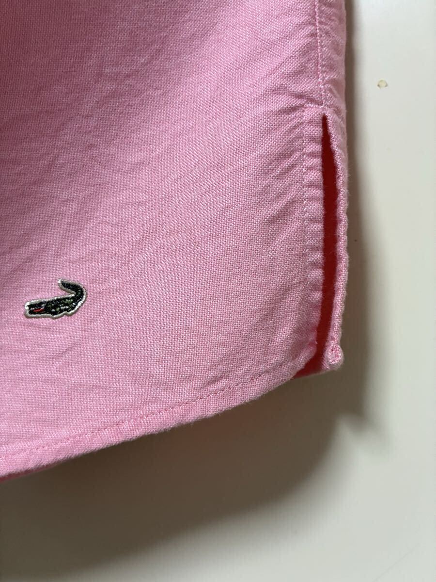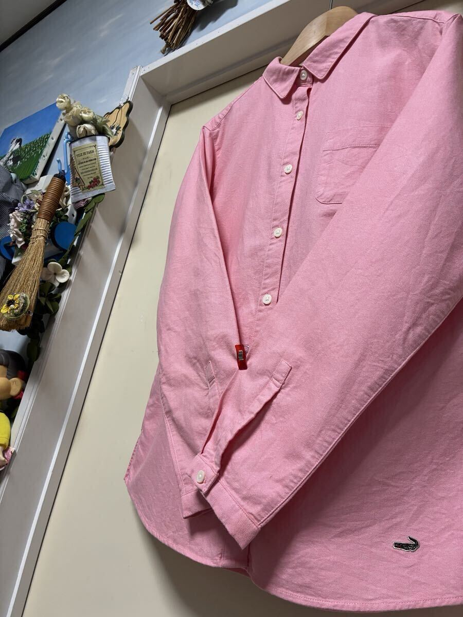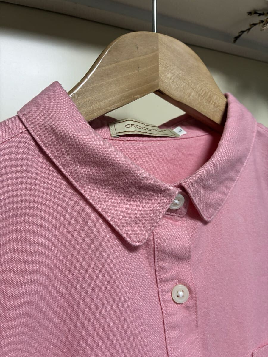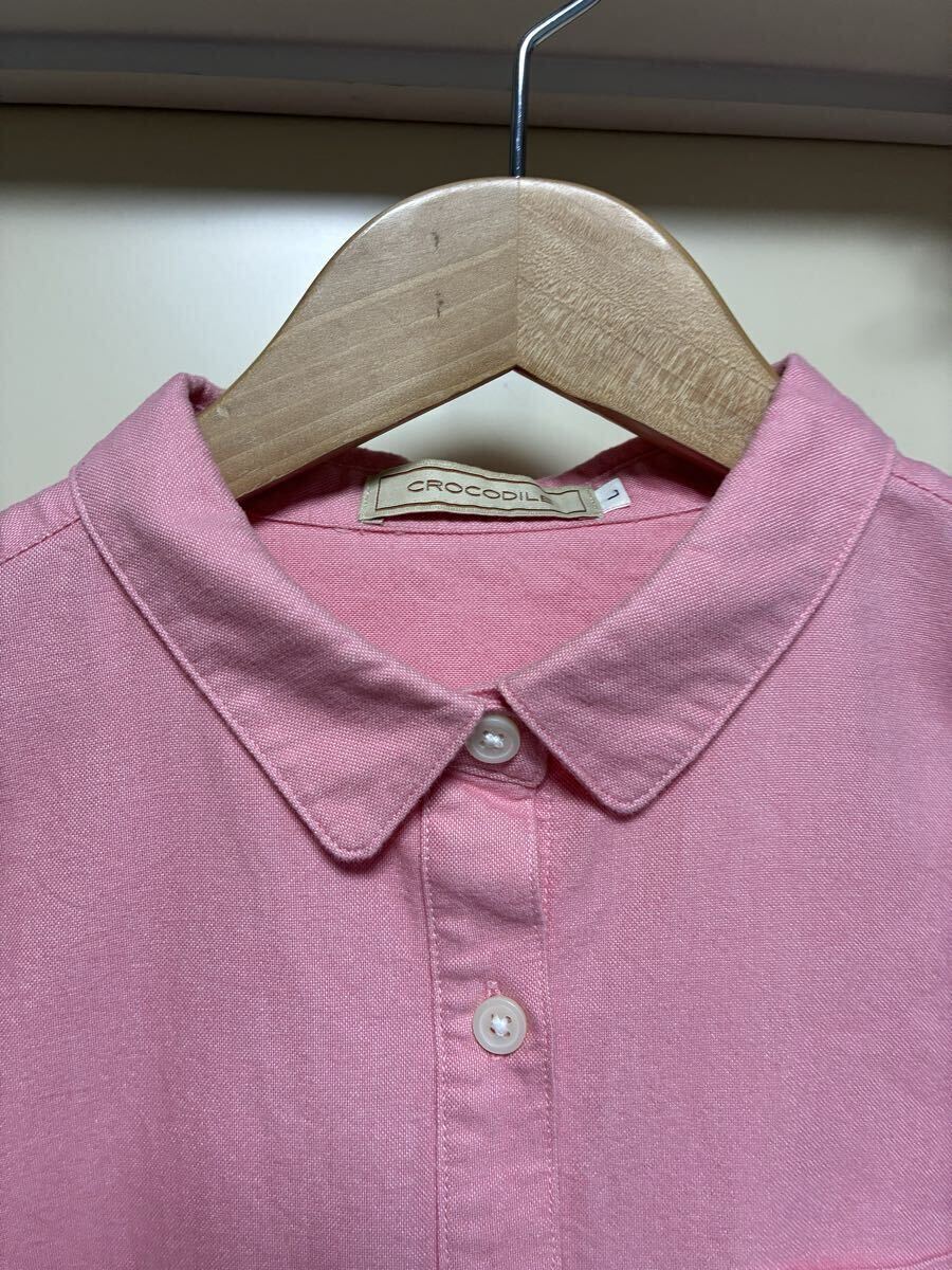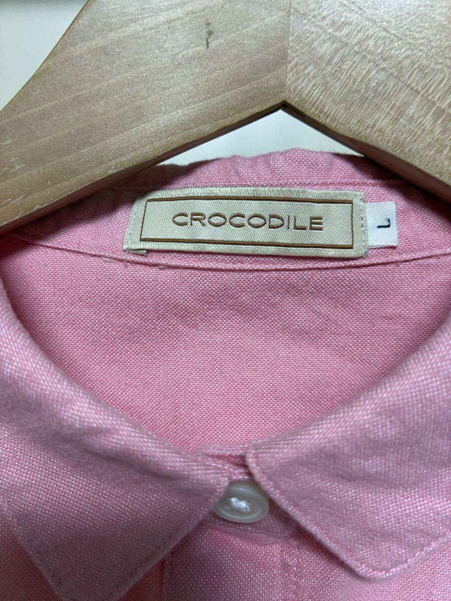 ★CROCODILE(クロコダイル)★優しい色合いで裾辺りのクロコダイル刺繍がお洒落な揺ったりコットンブラウスになります。ピンク系を基調とした色合いで襟は小さめで前中心はボタンになっています。左側の胸元にはポケットが付いていて裾辺りの両サイドはスリット入りになっています。裾の左側にはクロコダイル刺繍がほどこされていて緩やかなカーブを描いています。後ろ側の中心にはタックが入っていて揺ったりとしたお洒落な一枚に仕上がっています。