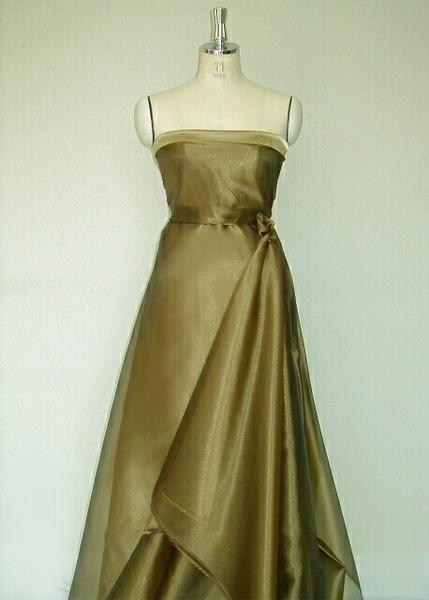 【値下げ】オリーブ系ゴールド色の2色染め光沢オーガンジー(3m)
