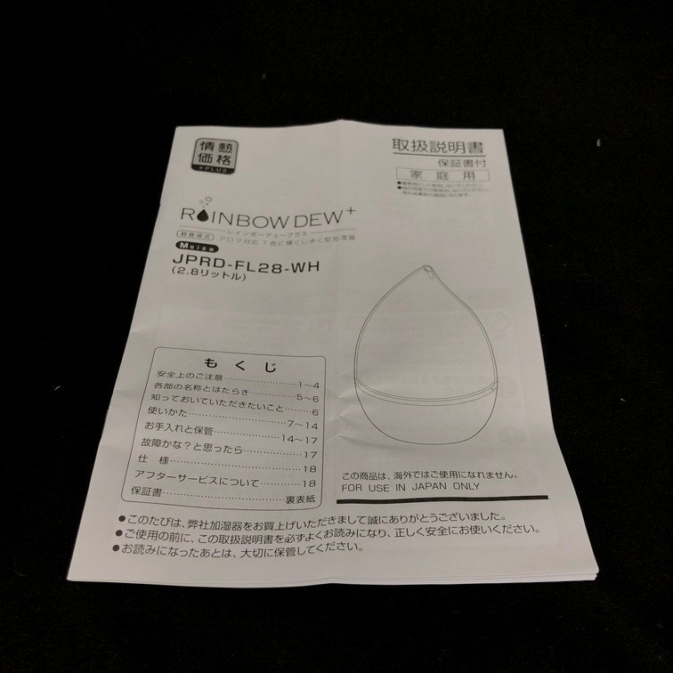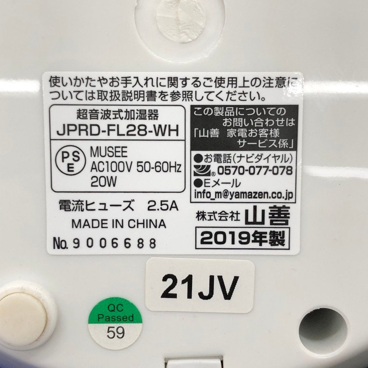 YAMAZEN 山善 超音波式加湿器 レインボーデュープラス JPRD-FL28-WH 9006688 通電〇【DJAN0007】 |