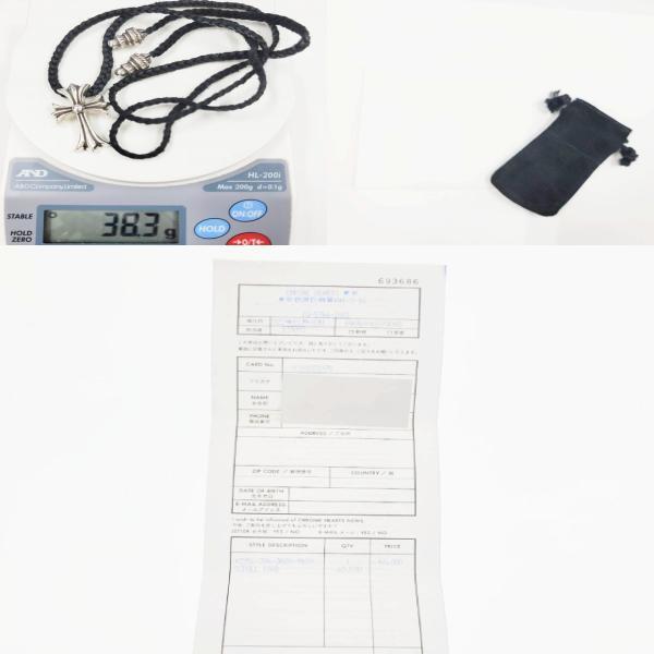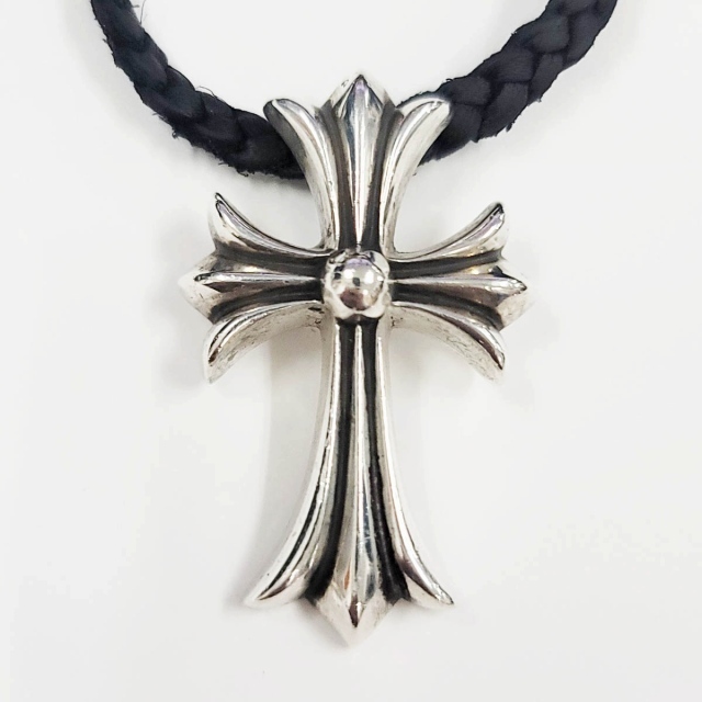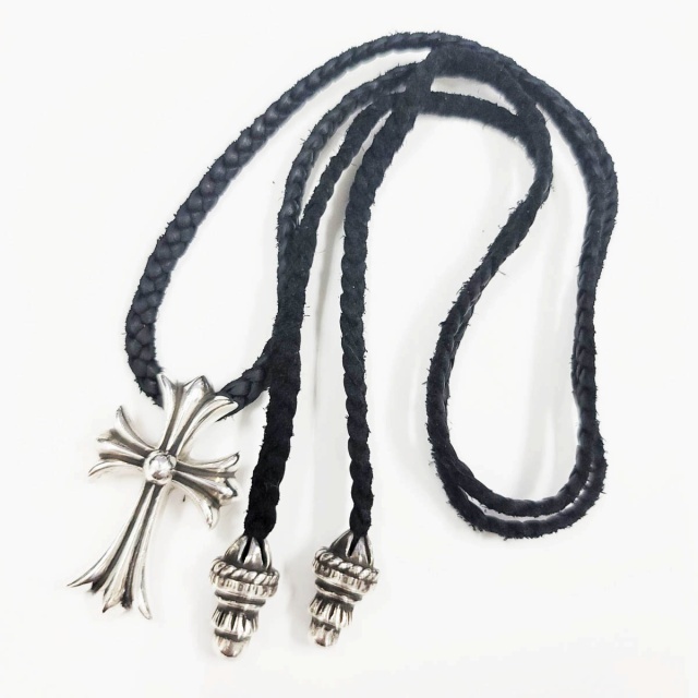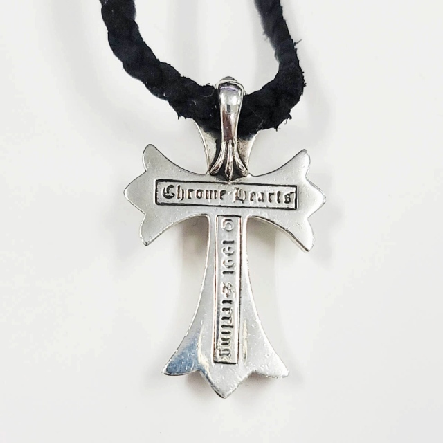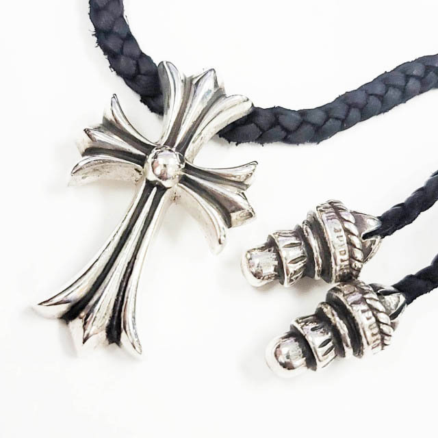 クロムハーツ CHROME HEARTS CH CRS SMLスモールCHクロス BC ボロチップ レザーブレイド ネックレス 925 シルバー ブラック ブランド古着ベクトル☆AA★▲
