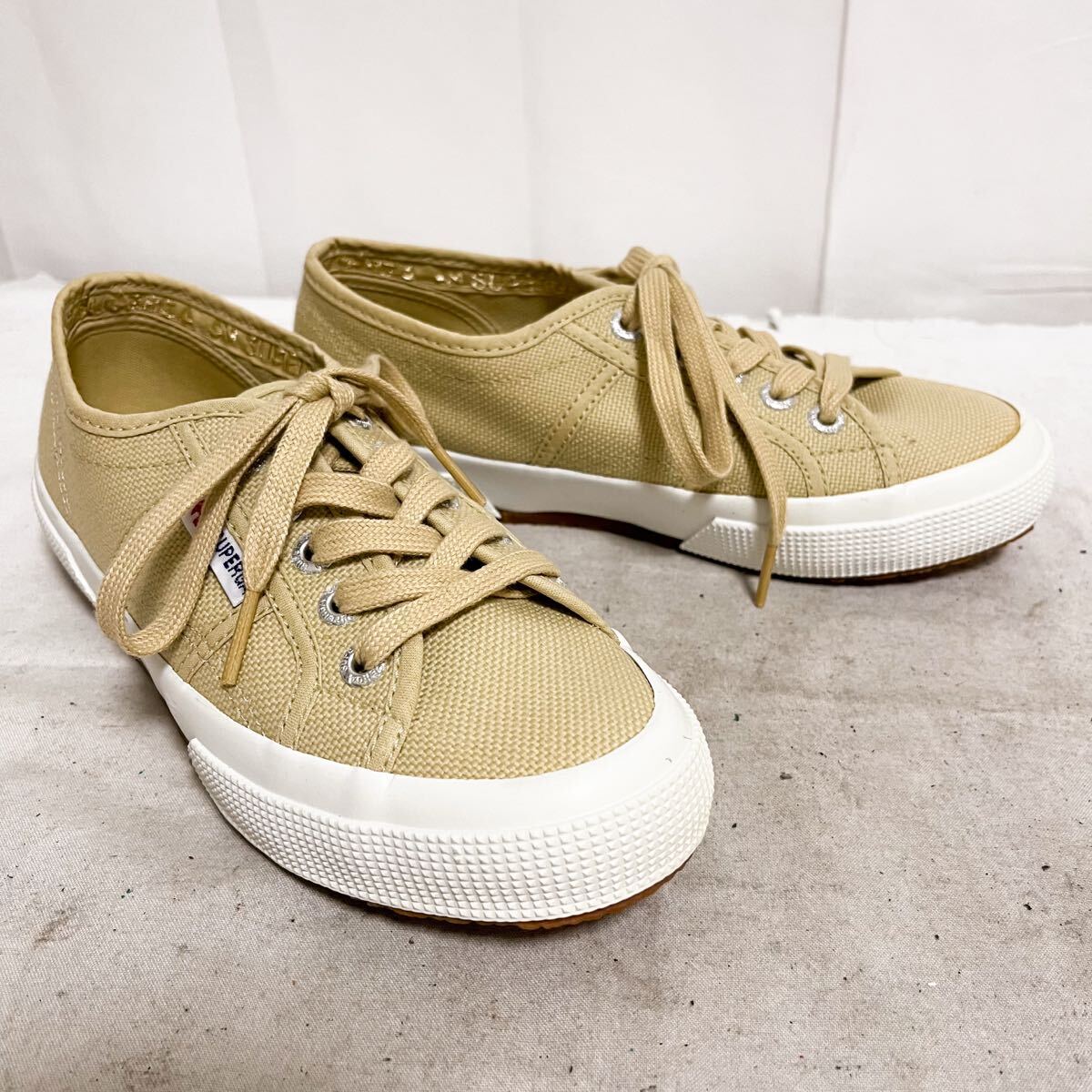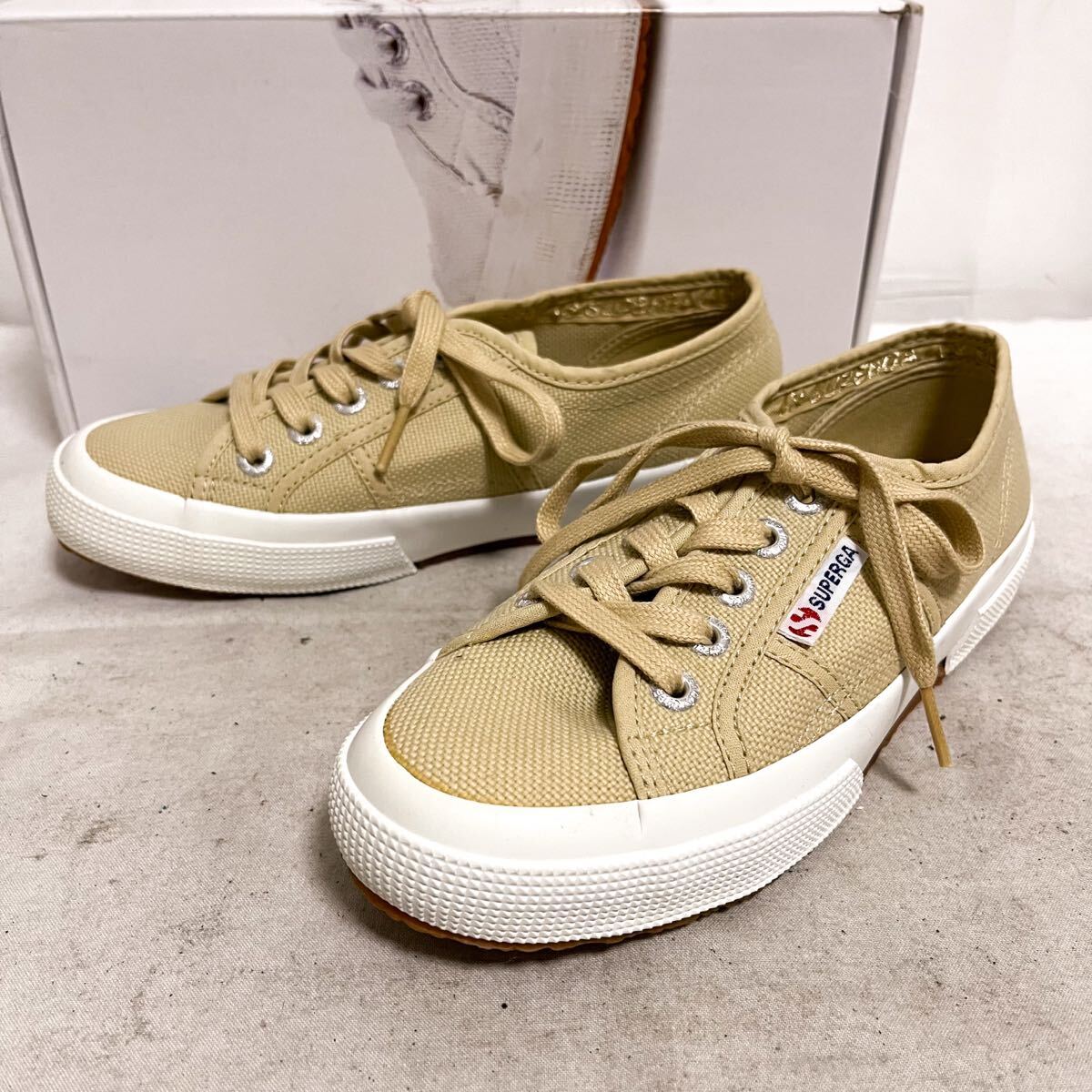 和869★ 箱付き SUPERGA スペルガ ローカット スニーカー シューズ 35 ベージュ レディース