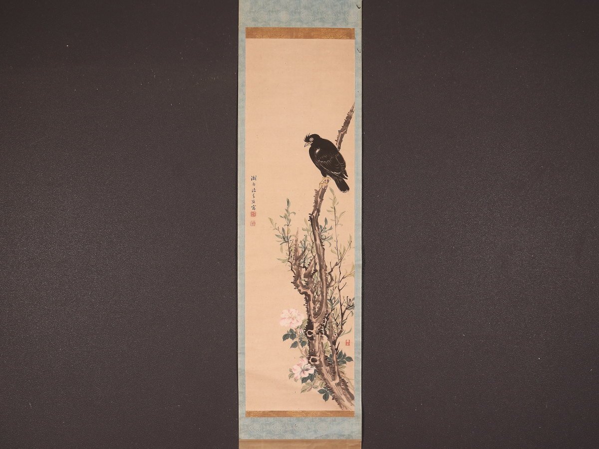 【真作】【伝来_弐】hp1403〈清水諸葛監〉八哥鳥図 長崎派 沈南蘋派 江戸時代中期 中国