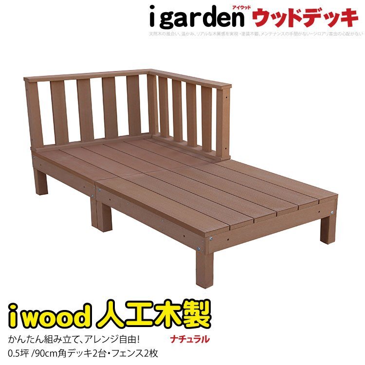 igarden 人工木 アイウッドデッキ 4点セット(デッキ2・ローフェンス2)0.5坪 ナチュラル 樹脂製 テラス バルコニー ベランダ -2d2f