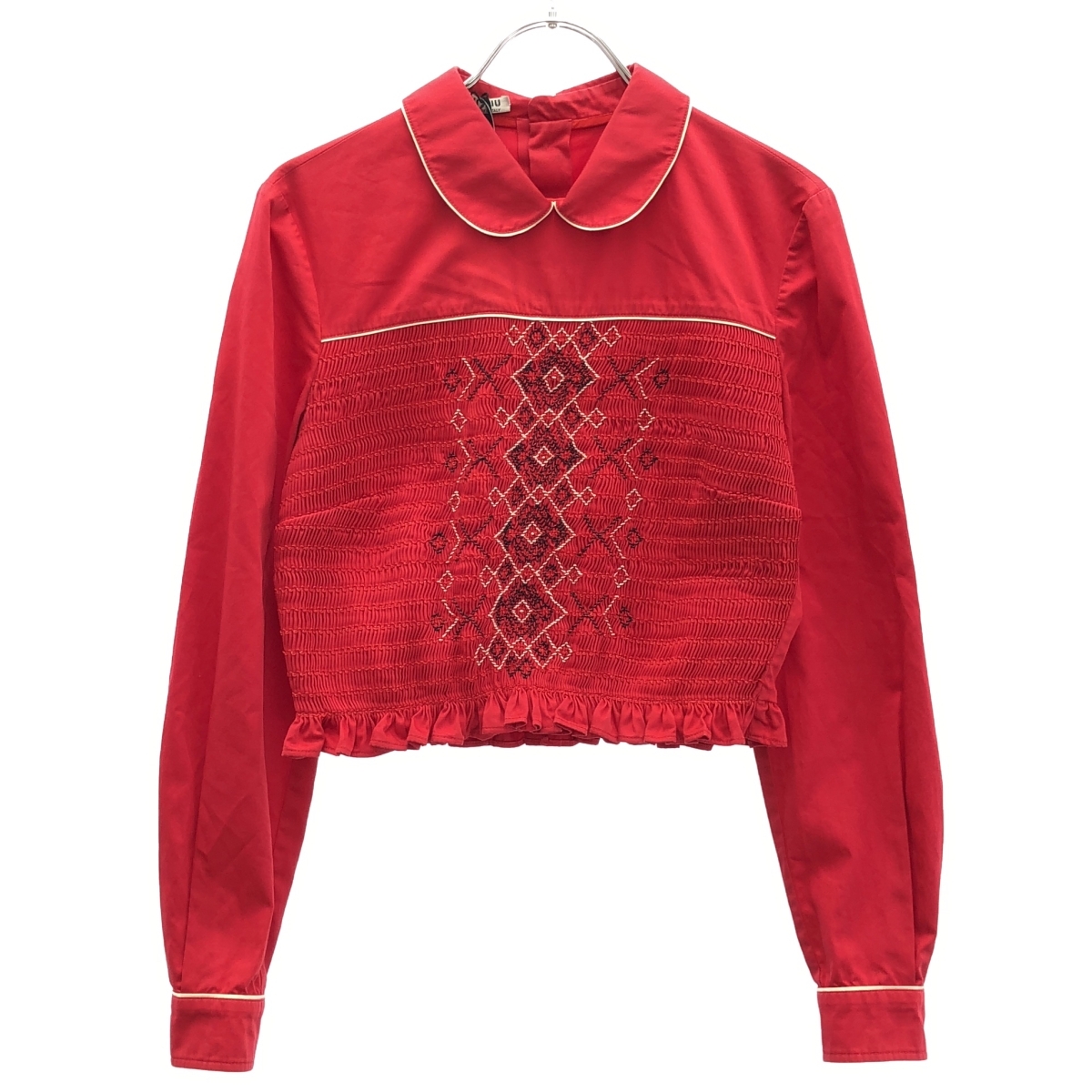 miu miu ミュウミュウ 16AW エンブロイダリーギャザーブラウス MK1188 レッド 40 IT7H3G4B75DC