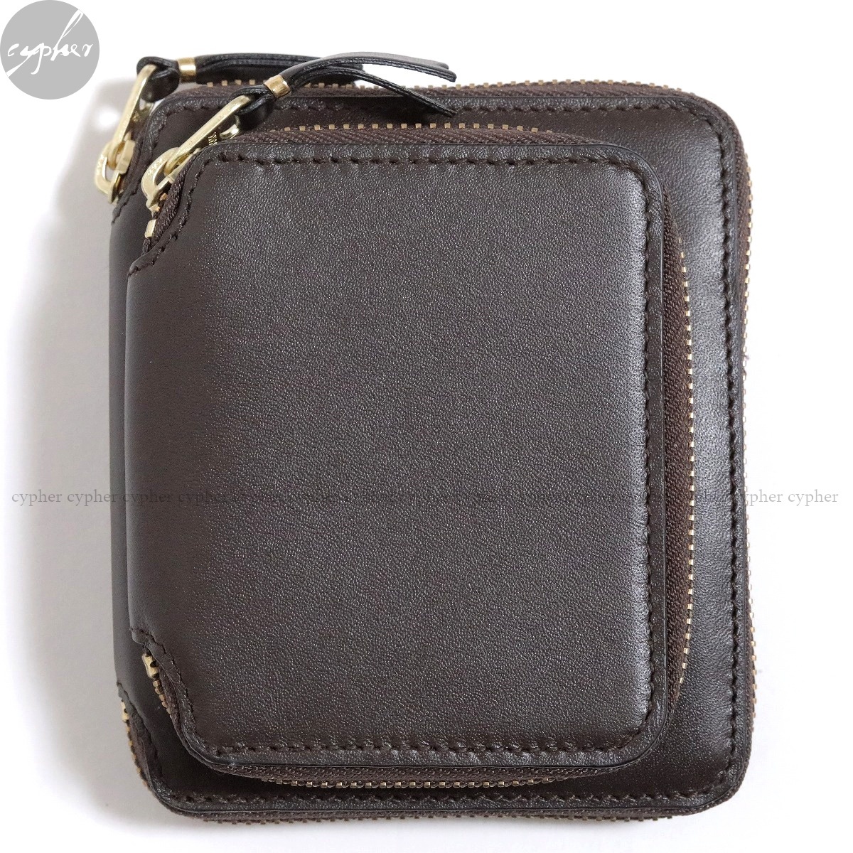 新品 ウォレット コムデギャルソン SA2100OP ブラウン WALLET 財布 レザー アウトサイド ポケット 札入れ 二つ折り カード入れ 小銭入れ 茶