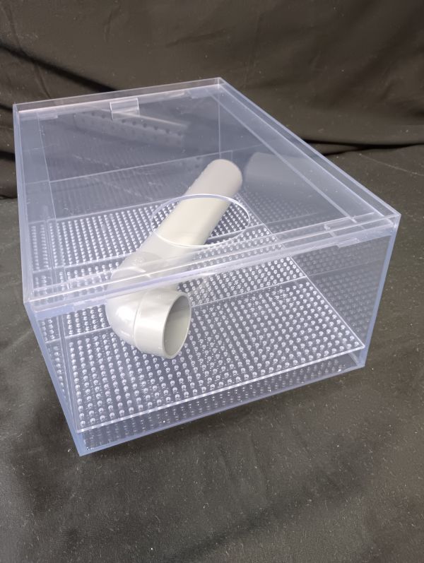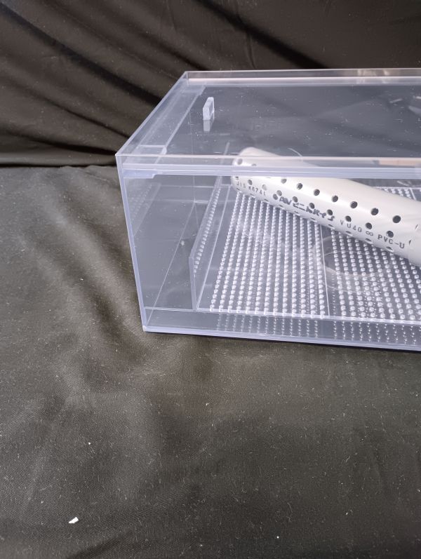 ウールボックス内に仕切り板を設けて飼育水はオーバーフローして、