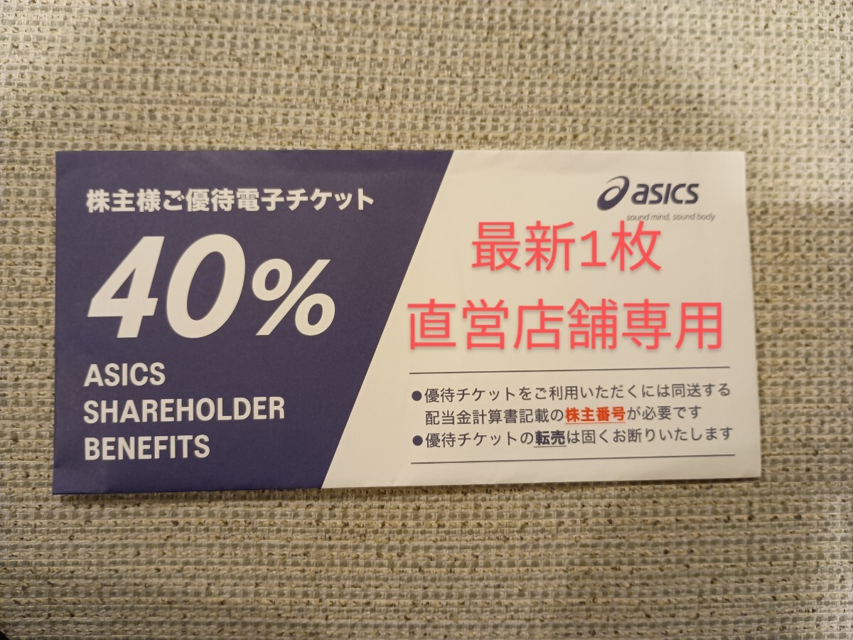 アシックスの株主優待で直営店舗用40%割引クーポン1枚です。