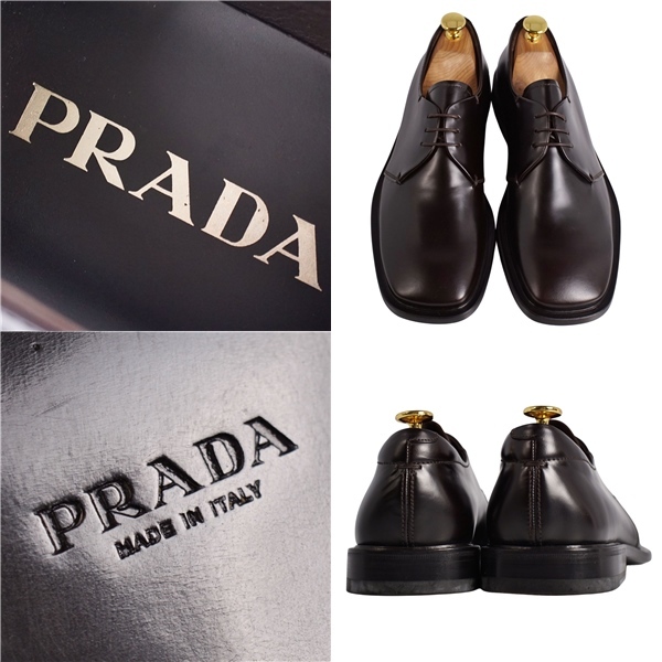 | 未使用 プラダ PRADA レザーシューズ ダービーシューズ ビジネスシューズ 革靴 メンズ 6.5(25.5cm相当) ダークブラウン |