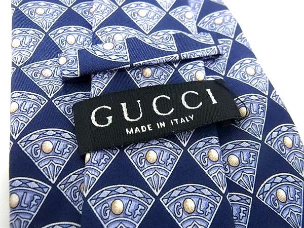 ■美品■ GUCCI グッチ GOLF シルク100% ネクタイ ビジネス 紳士 メンズ ブルー系 DH0206