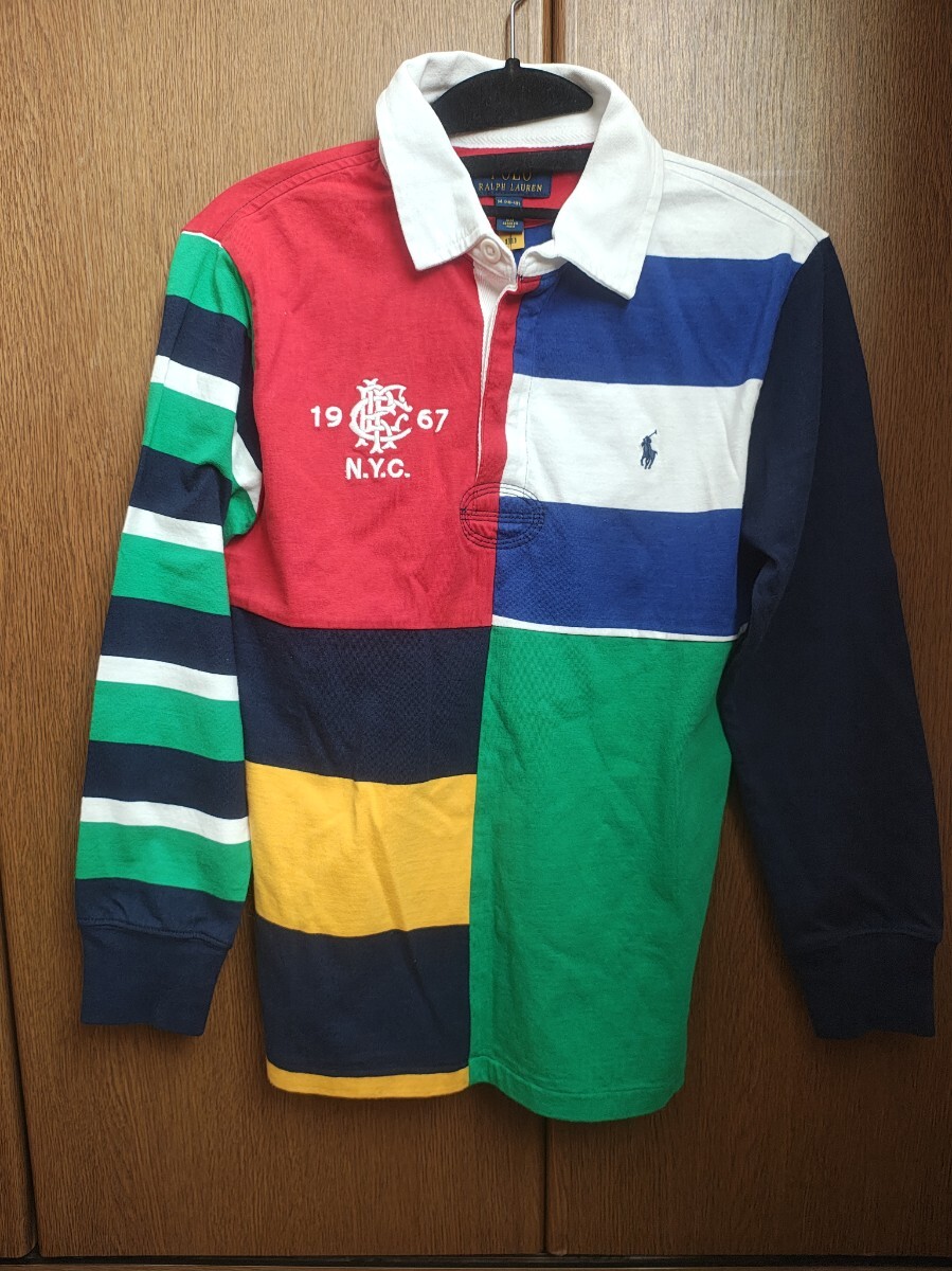 クラシックフィット パッチワーク ジャージー ラグビーシャツ ラガー ポロシャツ