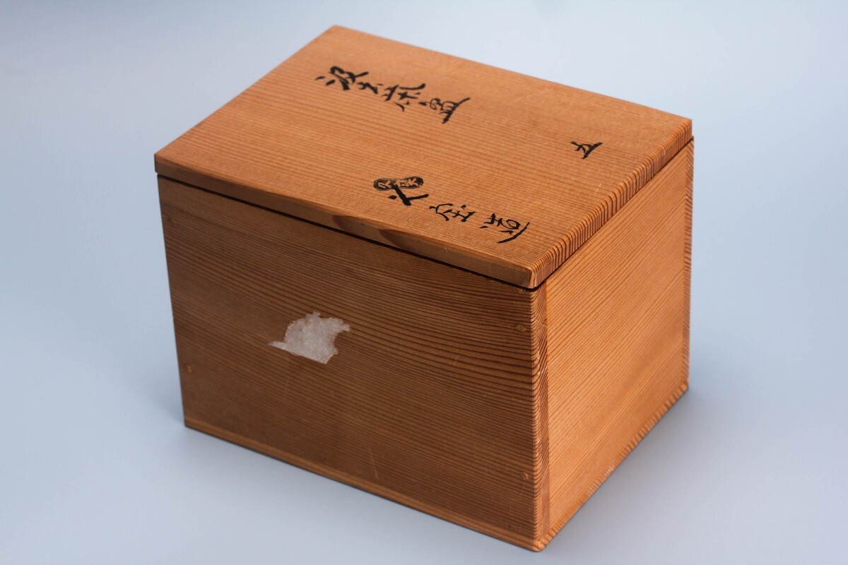 稀に他の作品名・作家名が書き付けられた木箱をお付けしております。誤認防止のため箱書き部分の画像を掲載しない場合もございます。