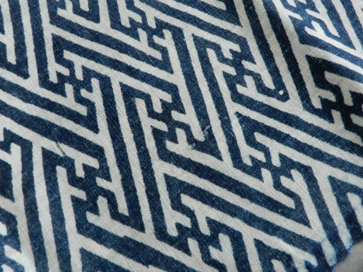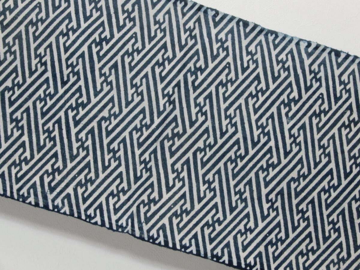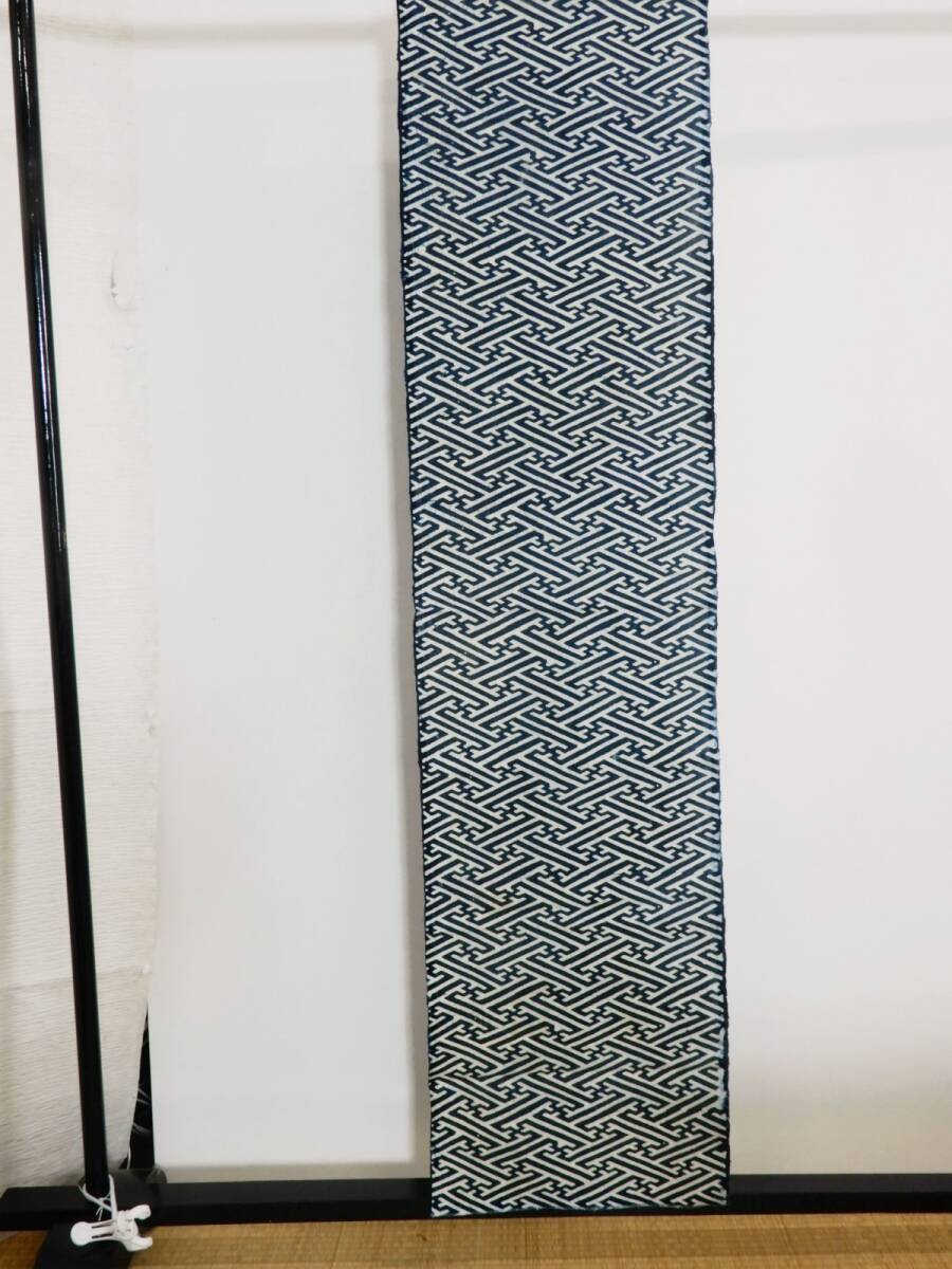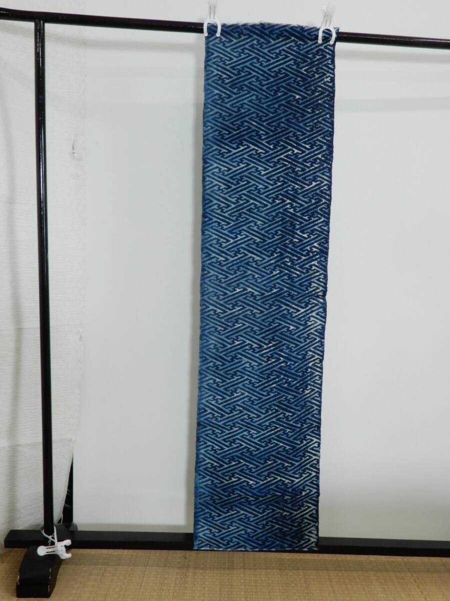 <銀の斧>木綿・明治期・藍型染・紗綾型・1巾・地白型染・古布・142x34cm