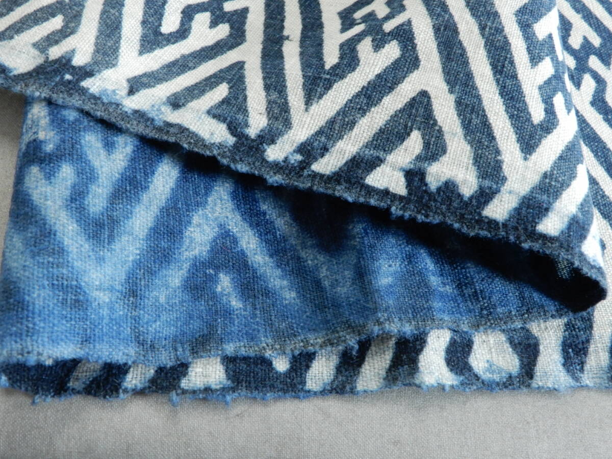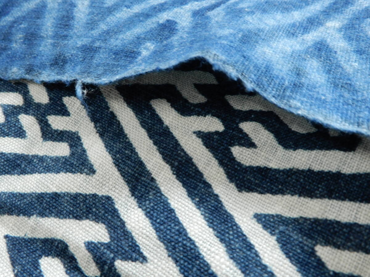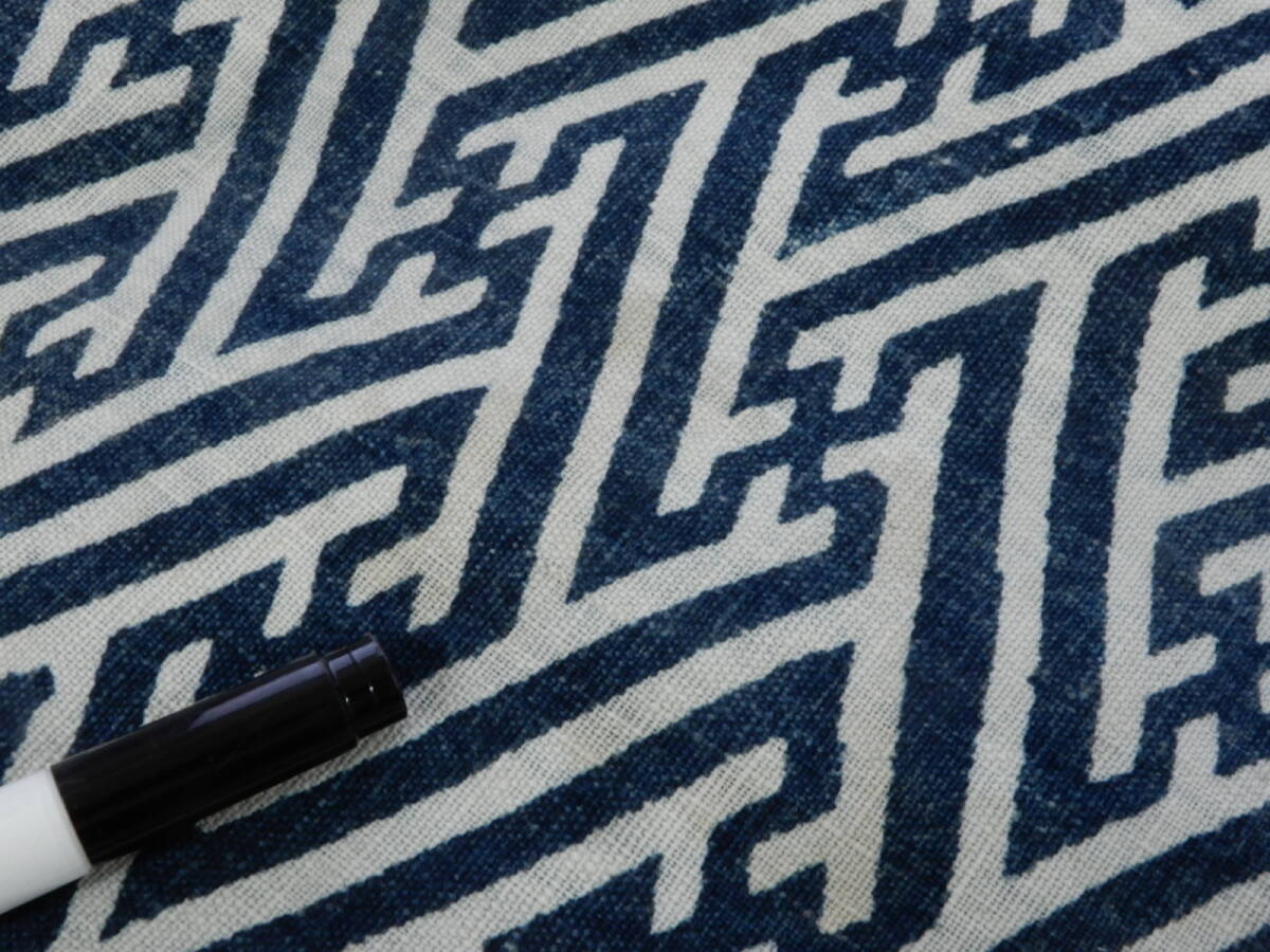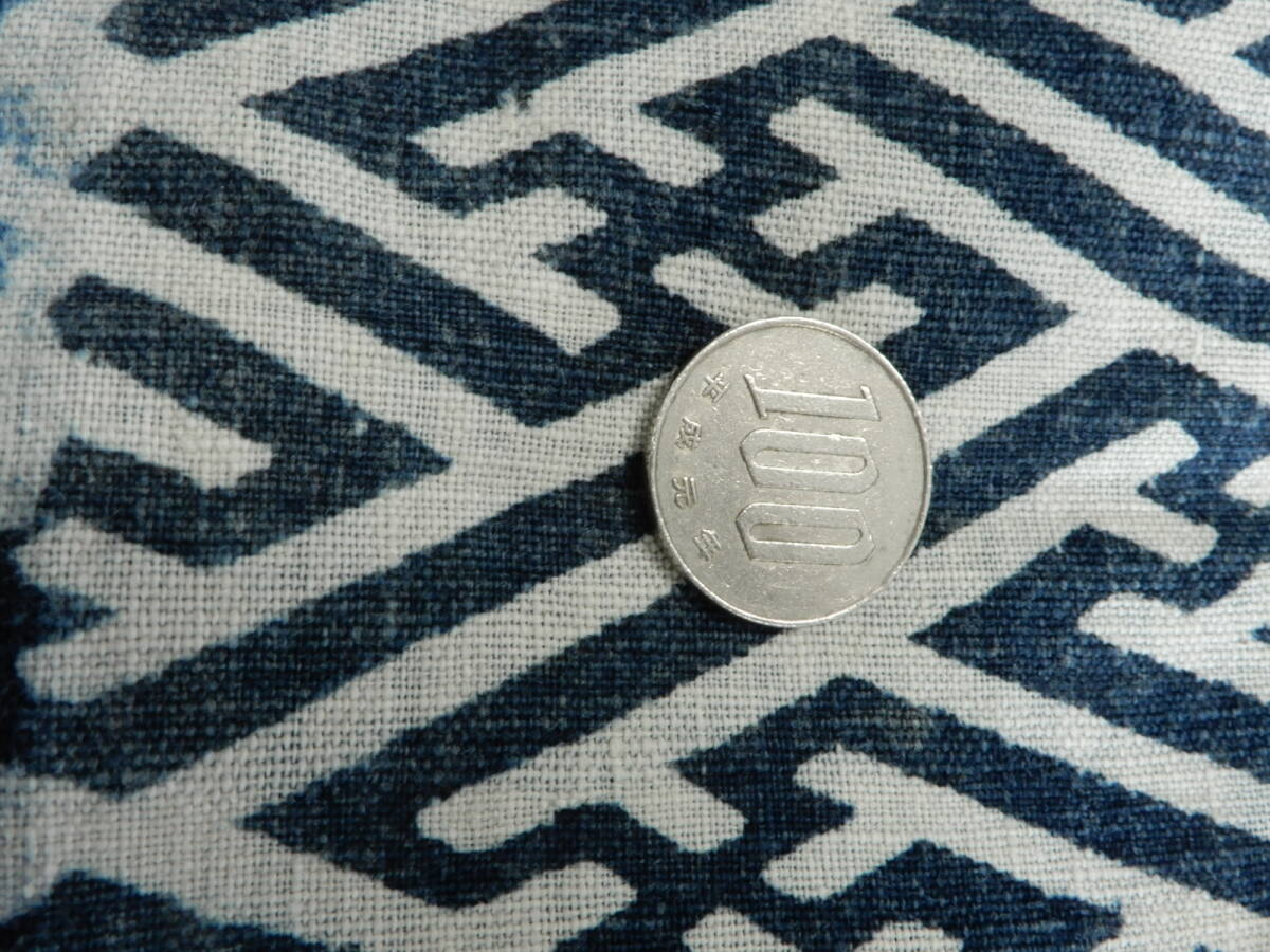 <銀の斧>木綿・明治期・藍型染・紗綾型・1巾・地白型染・古布・142x34cm