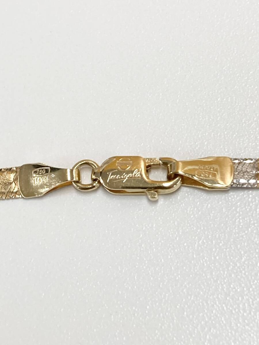 | Tecnigold K18 750 ヘリンボーン ネックレス スネークチェーン 40㎝/約3mm 6.1g ゴールド/シルバー 歪み有 デザインチェーン 1028③ |
