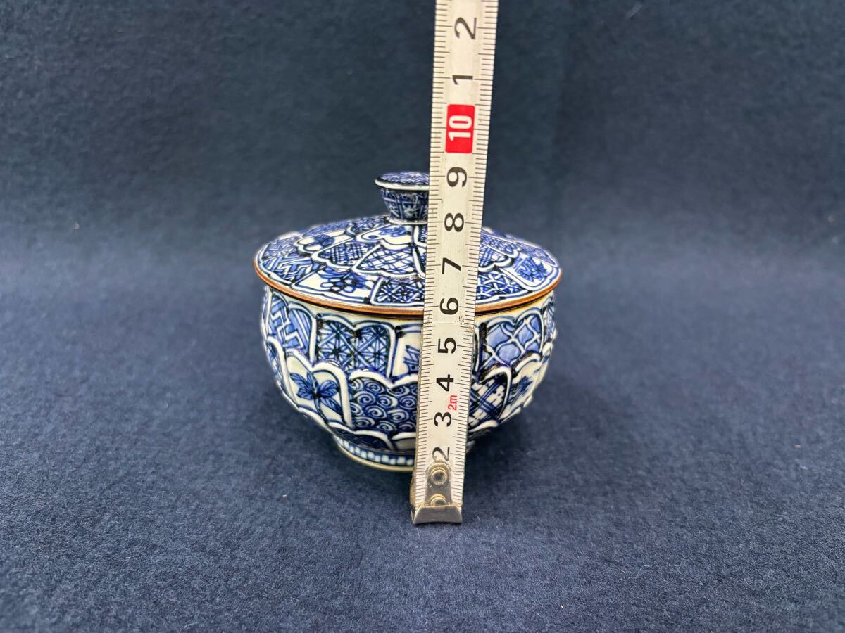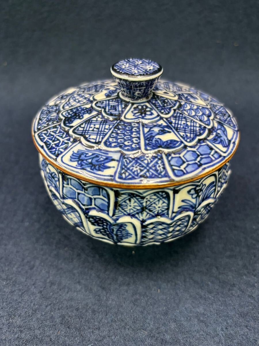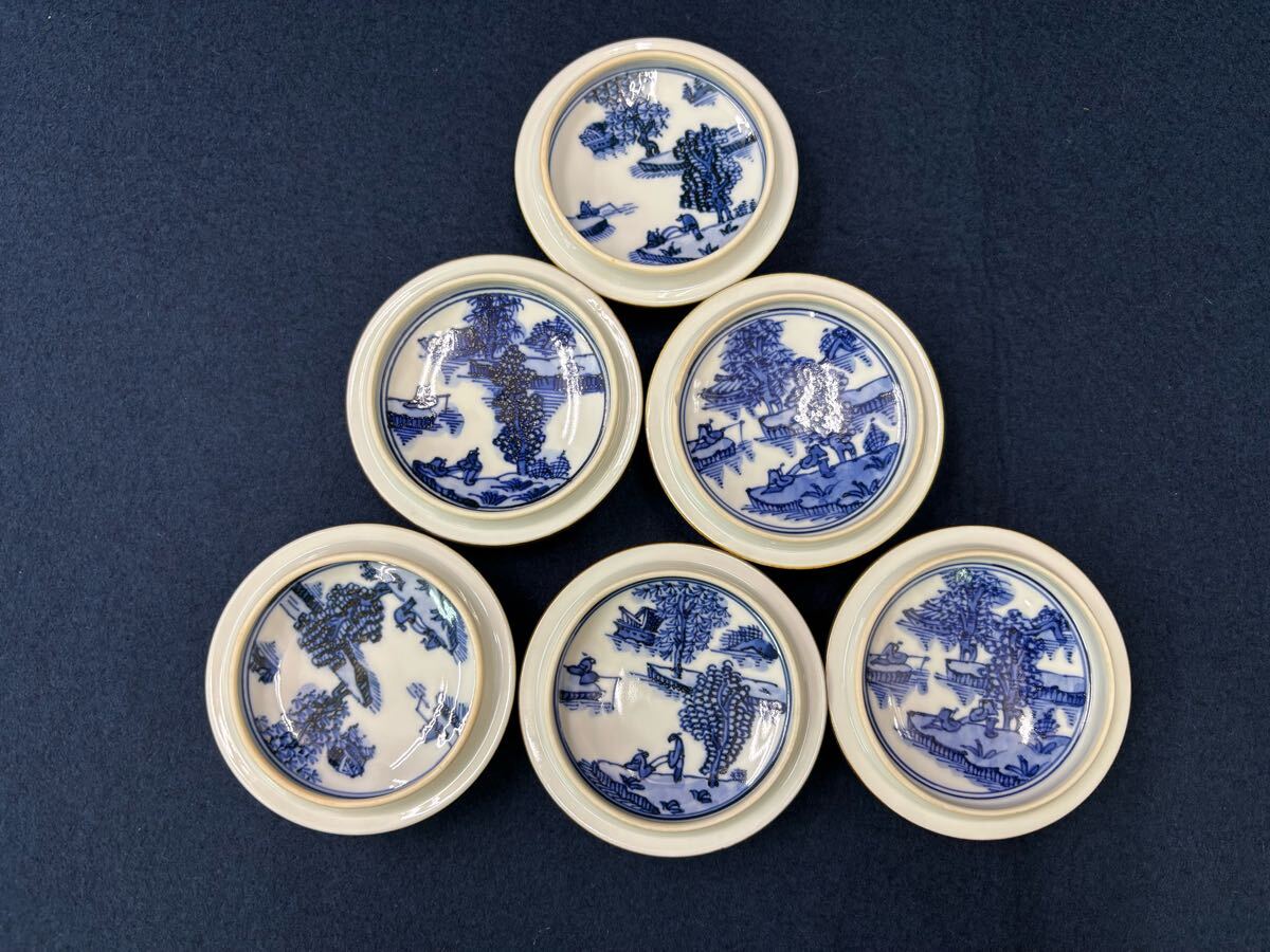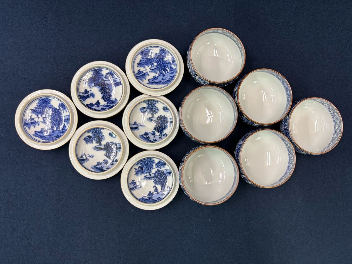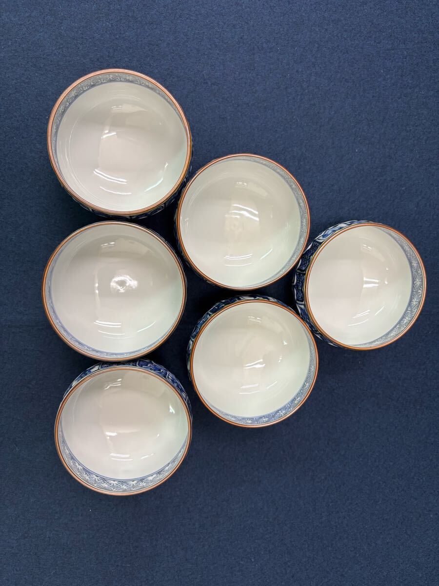 r7102516 京焼 清水焼 平安壹楽 造 染付 菊彫祥瑞 蓋付茶碗 茶道具 5客 在銘