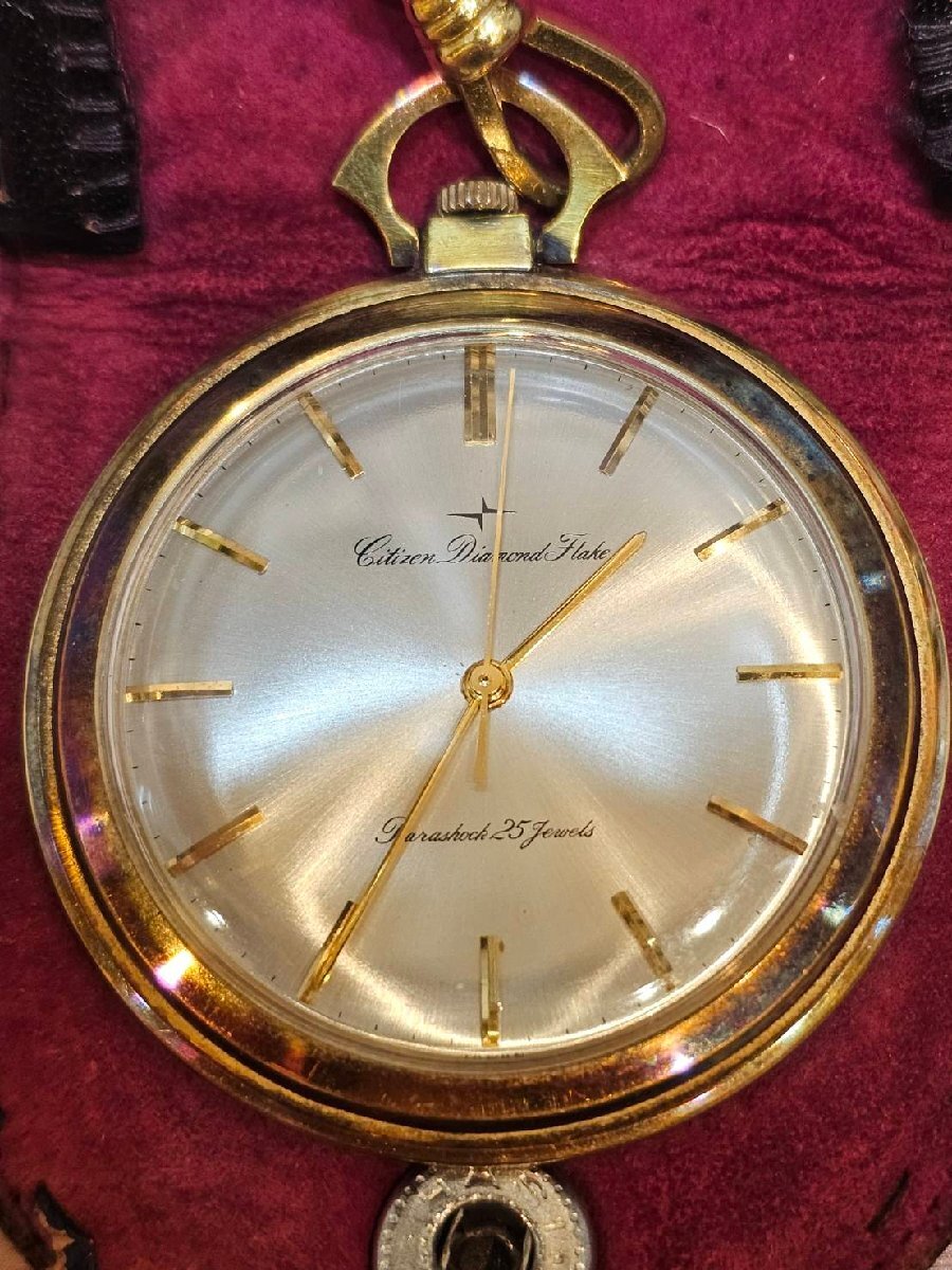 | 【KJ33167】CITIZEN ダイヤモンドフレーク 25石 懐中時計 手巻き式 ※稼働品 シチズン レトロ ヴィンテージ コレクション ゴールドカラー |