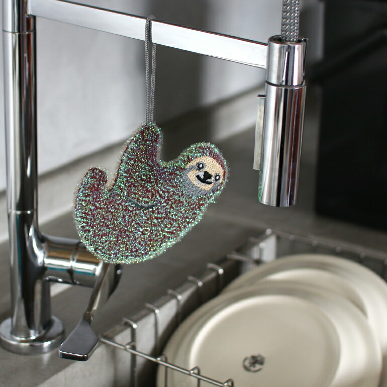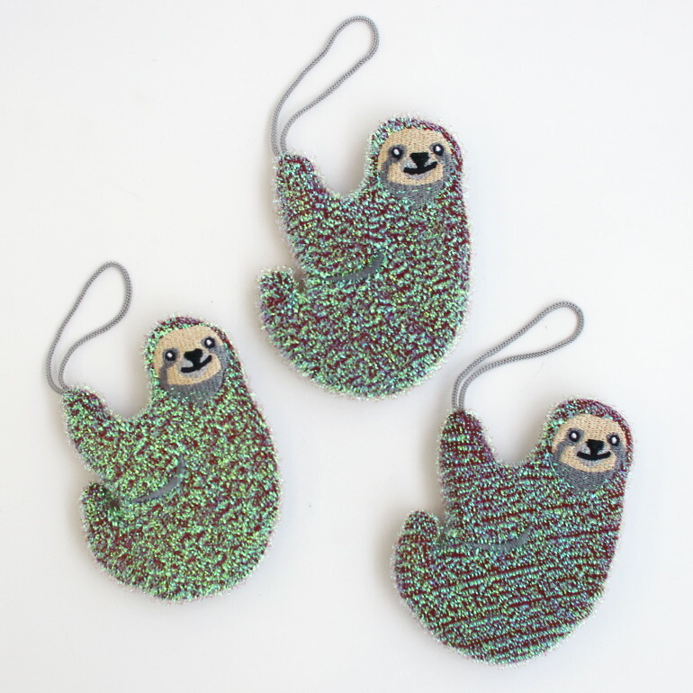 ユーモラスなナマケモノのかたちのキッチンスポンジ3個セット。