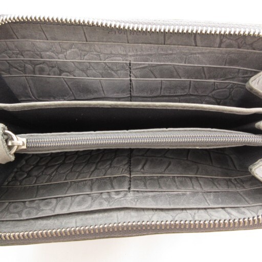 ジバンシィ GIVENCHY 長財布 ウォレット ロゴ ラウンドファスナー レザー クロコ型押し グレー /AE ■GY18 メンズ