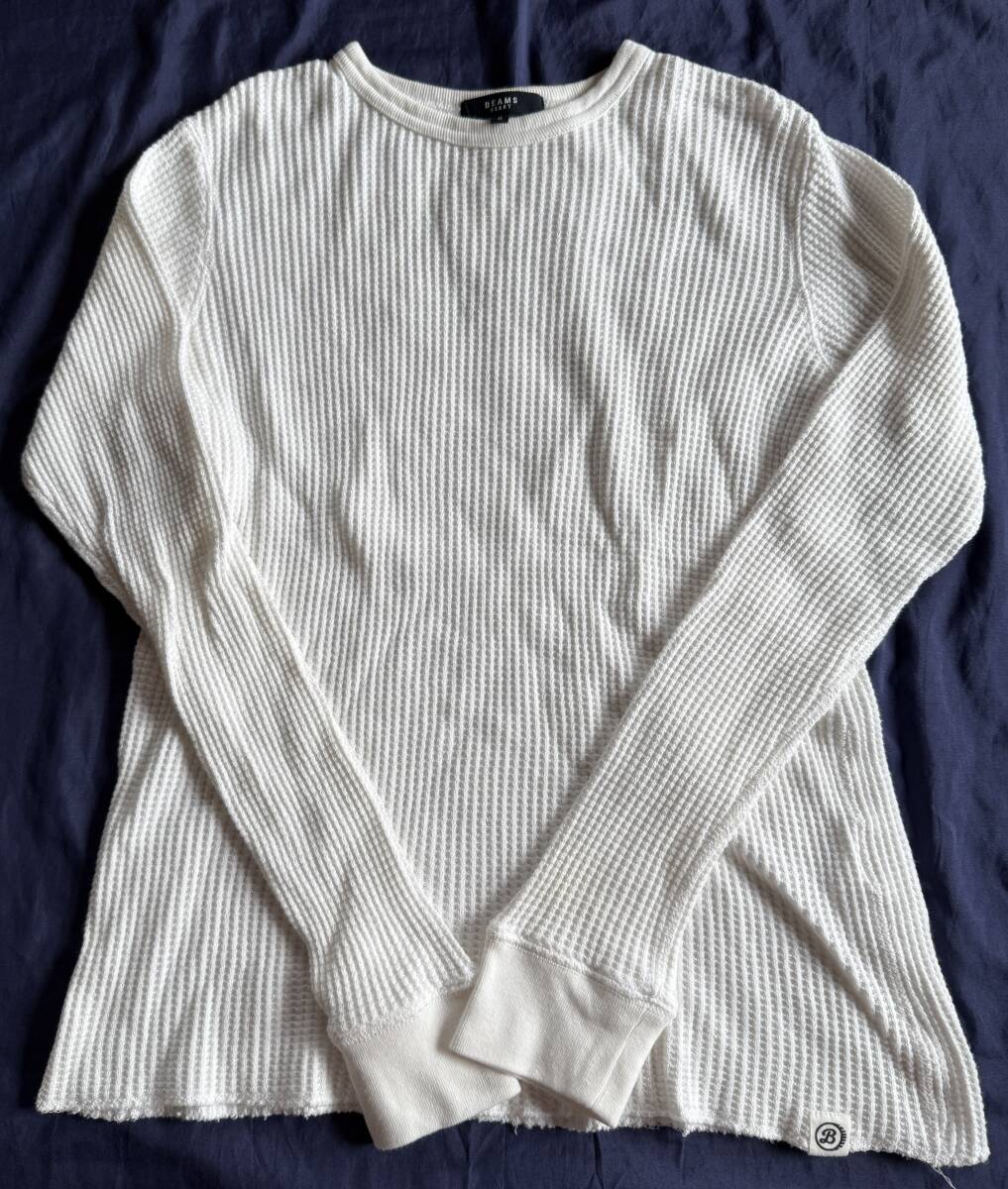 ビームス tシャツ 白 ワッフル生地 厚手 長袖 m 厚手 高級タイプ