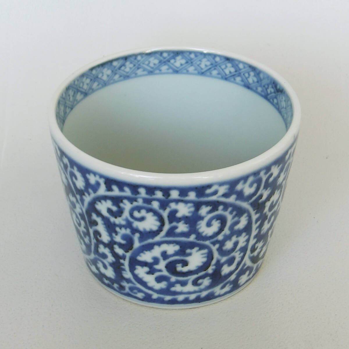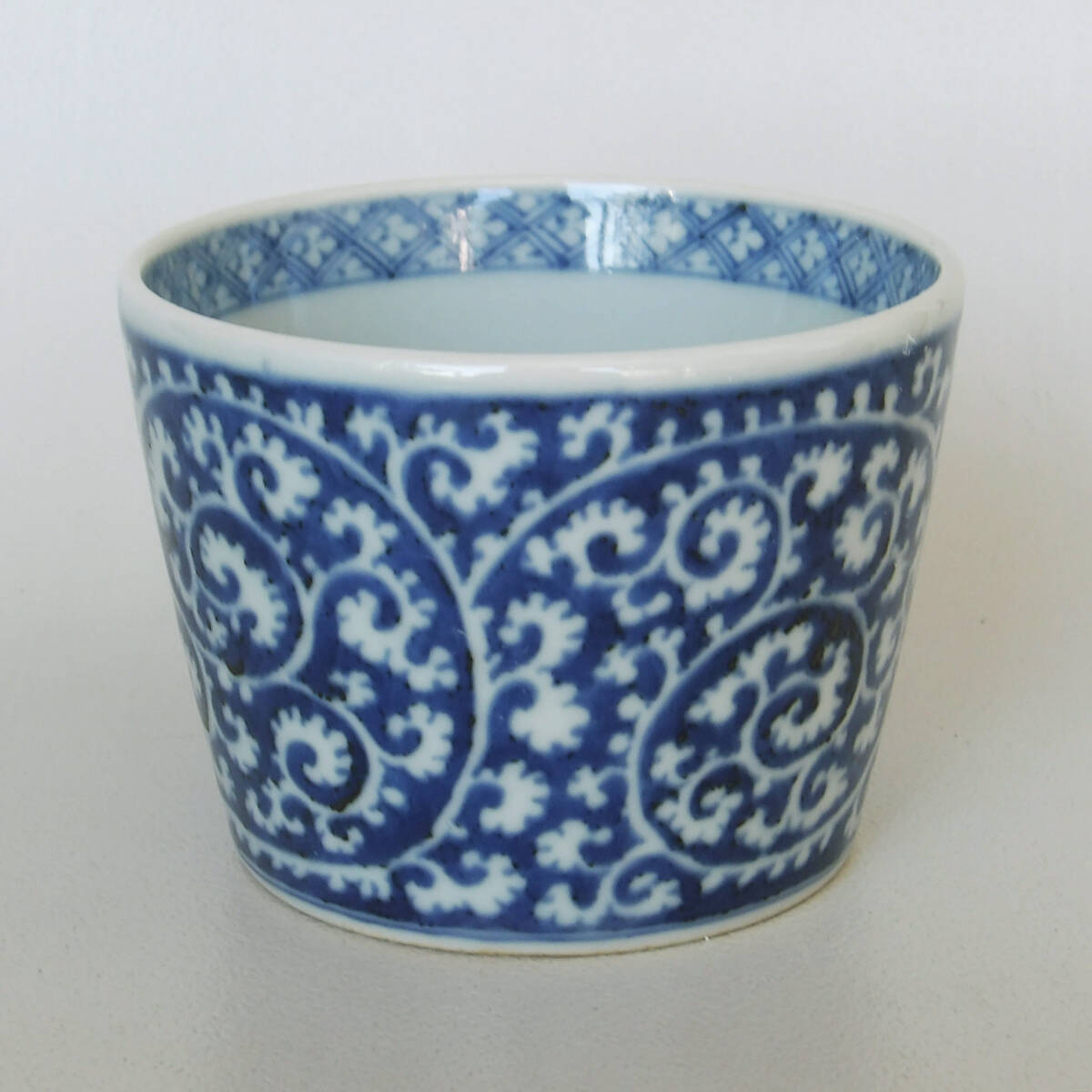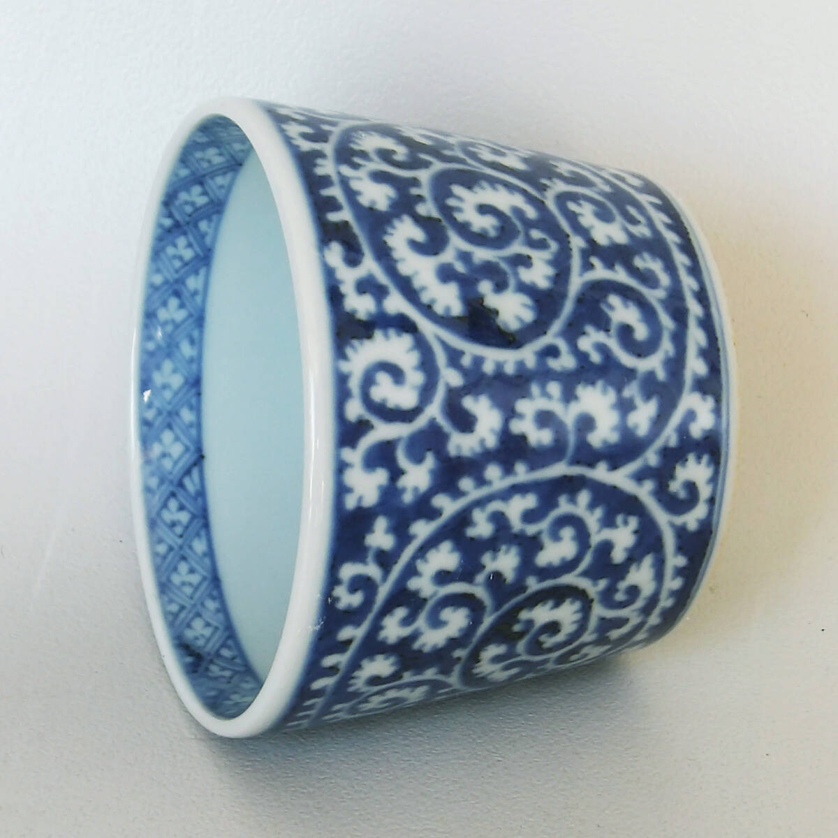 染付 白抜き蛸唐草の図 蕎麦猪口