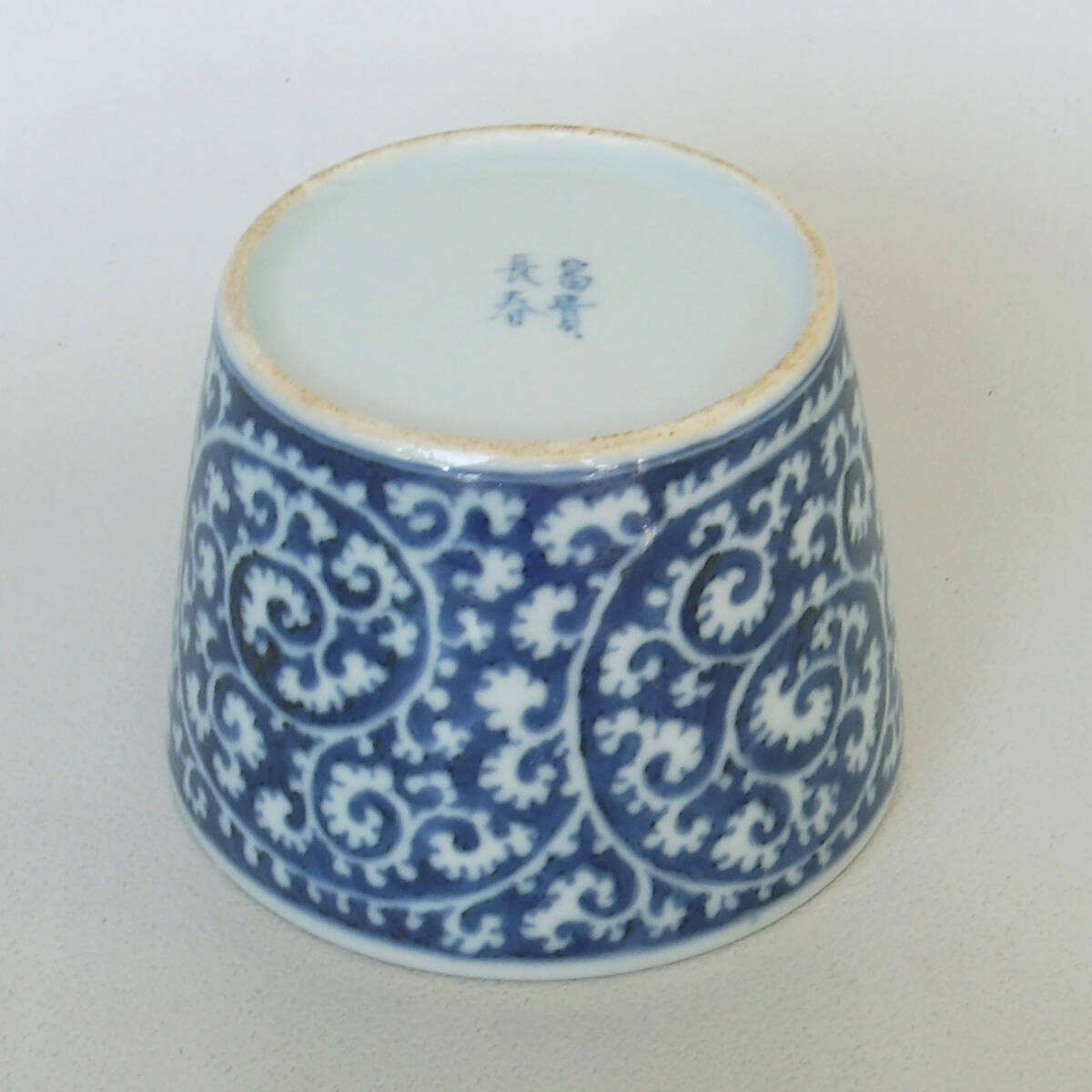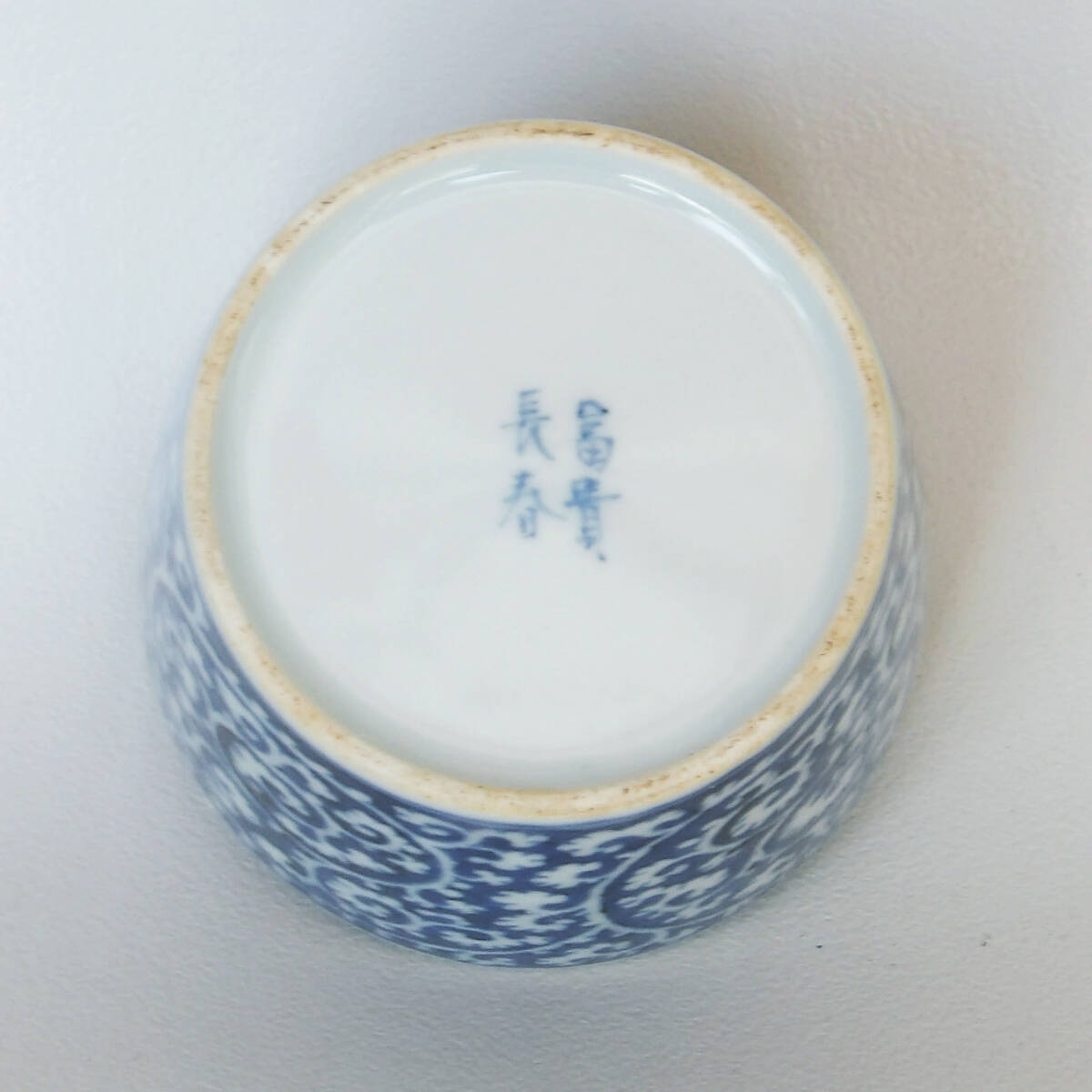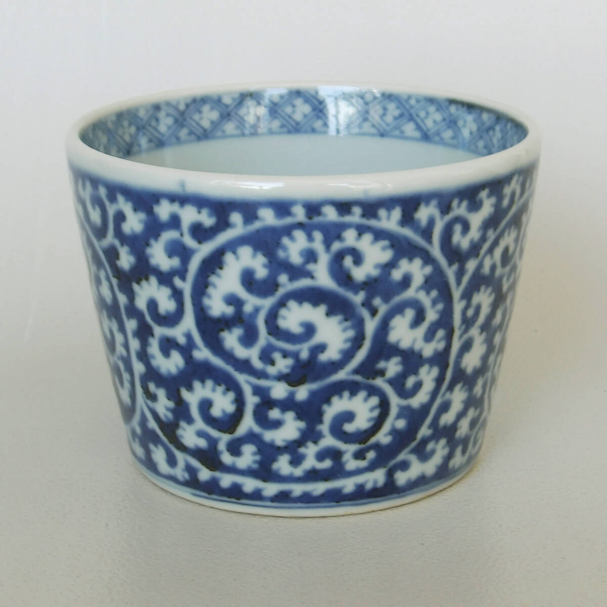 染付 白抜き蛸唐草の図 蕎麦猪口