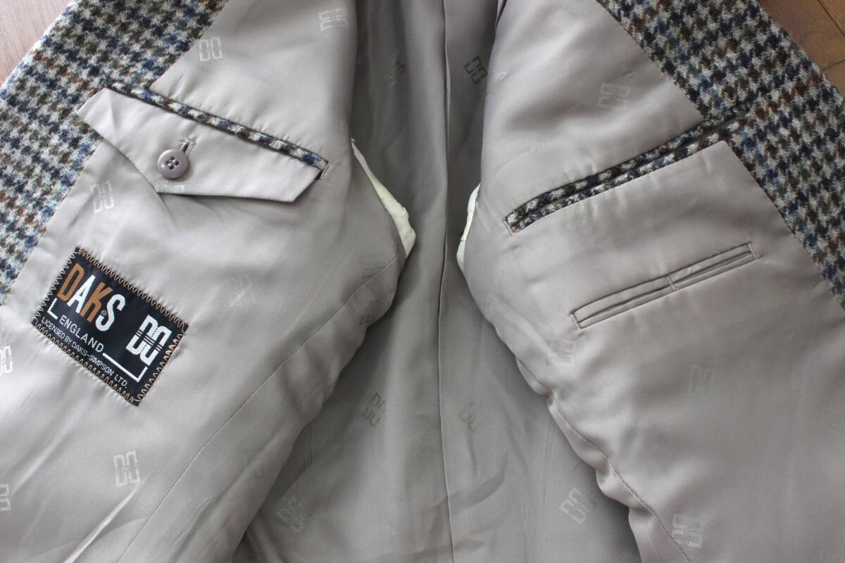 【新品同様】DAKS ダックス ツイードジャケット A7 LL相当 グレー系 千鳥格子 日本製 上品な英国紳士スタイル tqe ブレザー 秋冬