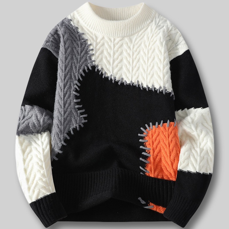 P693-XL 新品DCKMANY ウール混 クルーネック ニットセーター メンズ 秋冬 ケーブル編み 4配色 厚手 長袖 プルオーバー トップス/ブラック