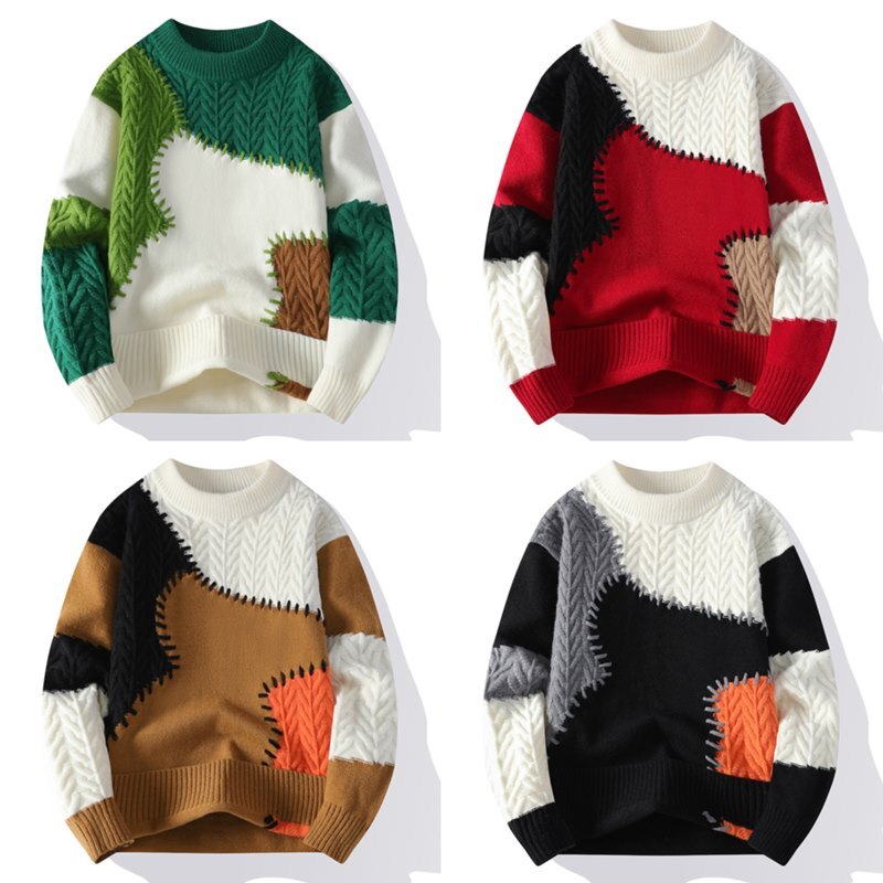 P693-XL 新品 DCKMANY ウール混 クルーネック ニットセーター メンズ 秋冬 ケーブル編み 4配色 厚手 長袖 プルオーバー トップス おしゃれ 日常 通勤 カジュアル ドロップショルダー