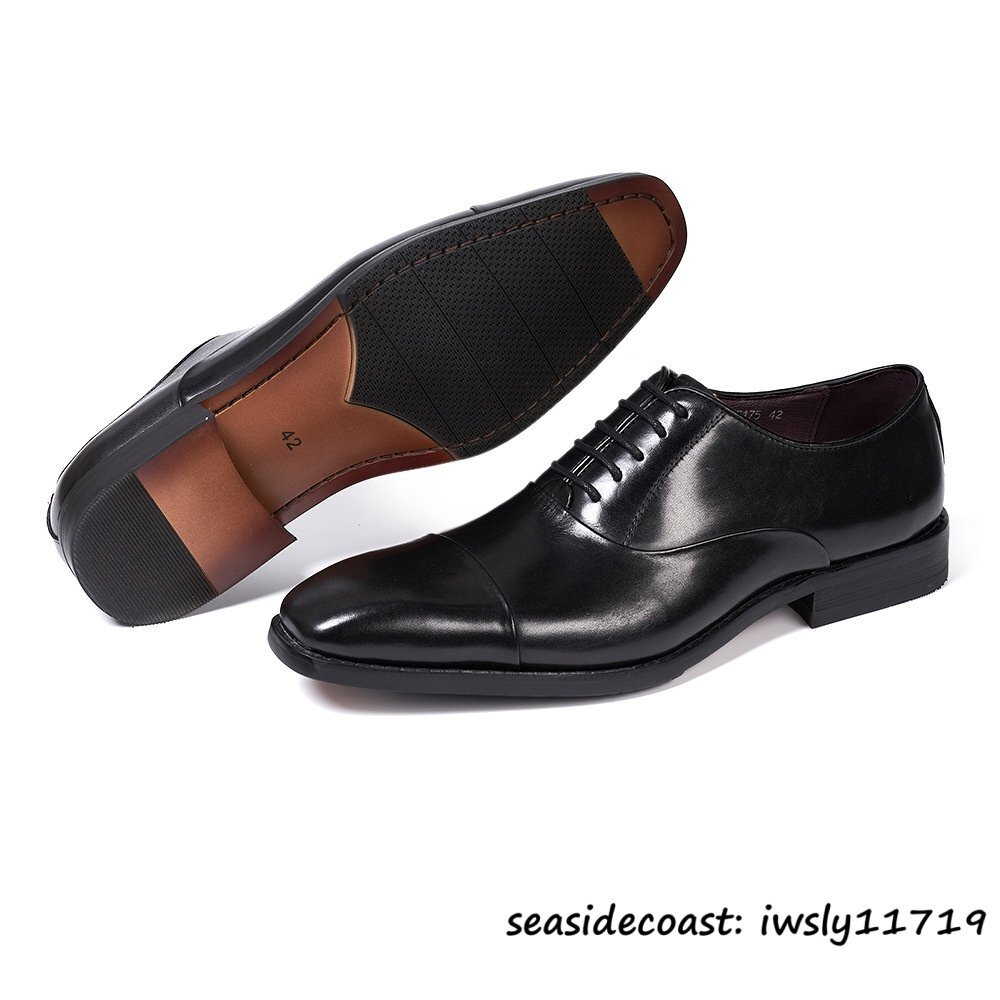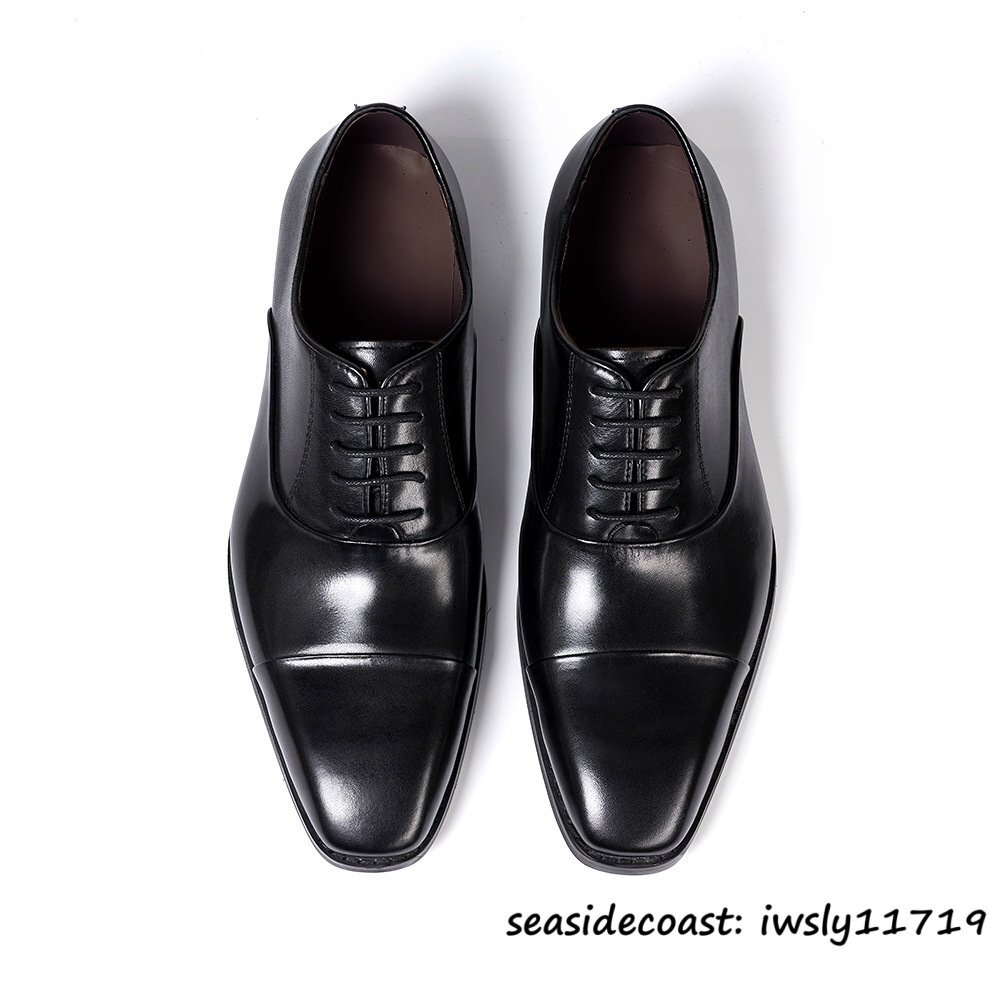 極美品★定価10万超 ビジネスシューズ メンズ 本革 レザーシューズ 職人手作り 紳士靴 牛革革靴 冠婚葬祭 フォーマル 宴会 ブラック 24.5cm