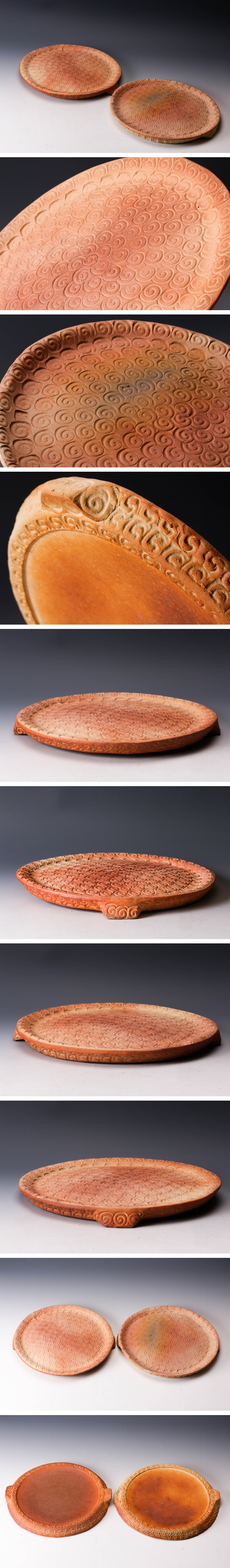 【佳香】坂田甚内 幅26cm 焼締皿 二客 本物保証