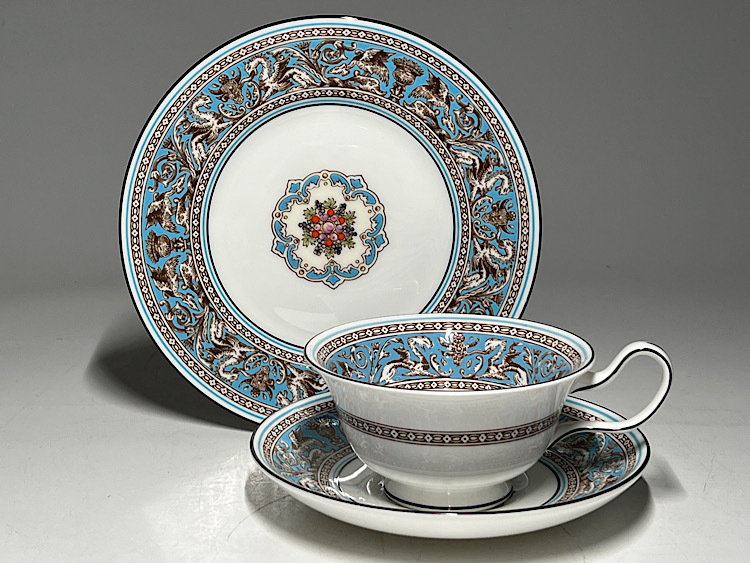 ウェッジウッド WEDGWOOD フロレンティーンターコイズ カップ&ソーサー + ケーキ皿 ◆商品詳細 寸法(約):ソーサー:2.5x14.8(高×幅cm) カップ:5.9x13.3x10.6(高×幅×口径cm) プレート:1.6x17.6(高×幅cm) ※寸法に若干の誤差が生じる場合もございます。 汚れ、擦り傷、剥がれがありますので、 ご承知の上入札お願いします。 状態等画像にてご確認の上ご入札よろしくお願いいたします。 ◆発送先等のご連絡とお支払いについて ※発送先等のご連絡 落札時から48時間以内にお願い致します。 ※お支払 かんたん決済の期限内にお願い致します。 複数点落札時にまとめて取引の場合(72時間内)に、 まとめて取引の取引手順(落札者方の操作)を参考にお願い致します。 梱包したサイズを測って、地方によって送料を決めますので、よろしくお願いします。 ◆掲載画像について ※画像は現物を撮影しておりますが、照度、遮光、モニターによっては実物と 色目が異なって見えることがありますのでご注意ください。掲載画像では確認 できない傷や汚れがある可能性もございます、あくまで 中古品であるということをご承知の上、御入札をお願い致します。 ◆補償について 商品到着後はすぐに状態の確認をお願い致します。 商品の破損等がございまし たら、箱や梱包材など全てそのままの状態で保存し、お早めにご連絡ください。 (到着日から一週間以上経過、梱包材の廃棄済み等の場合、保証は致しかねます のでご注意ください。) ◆返品について 思っていたイメージと違う、などのお客様主観による返品はお受けできません ので、予めご了承ください。ノークレーム、ノーリターンでお願いします。届 いた商品が商品説明と著しく異なる場合(寸法、キズ記載ミスなど)のみ承り ます。早めにご連絡ください。 ◆注意事項 当方の希望価格と隔たりがある場合は、終了前にやむなく取下げさせて頂く場 合がございます。 ※商品ご落札翌日から4日間以内にご連絡が取れない場合は、入札取消の処置を 取らさせていただく場合がございます。 ※評価の悪い方は取り消す場合がございます。 ※原則として当方の不備以外のキャンセル・返品・返金は受け付けておりません。 以上の点を予めご了承頂いた上で、入札・落札お願い致します。 ◆発送方法 ▼ゆうパック(補償あり/追跡あり) 梱包後のサイズ:~約60cm ※送料全国一律880円 (但し北海道、沖縄、離島は+500円いただきます。) 発送元は静岡県となります。 ( 商品の組み合わせによっては同梱をお断りさせていただく場合があります。) ※大型商品について 郵便局の規定を超える商品の場合は、佐川急便またはヤマトでの発送となります。 |