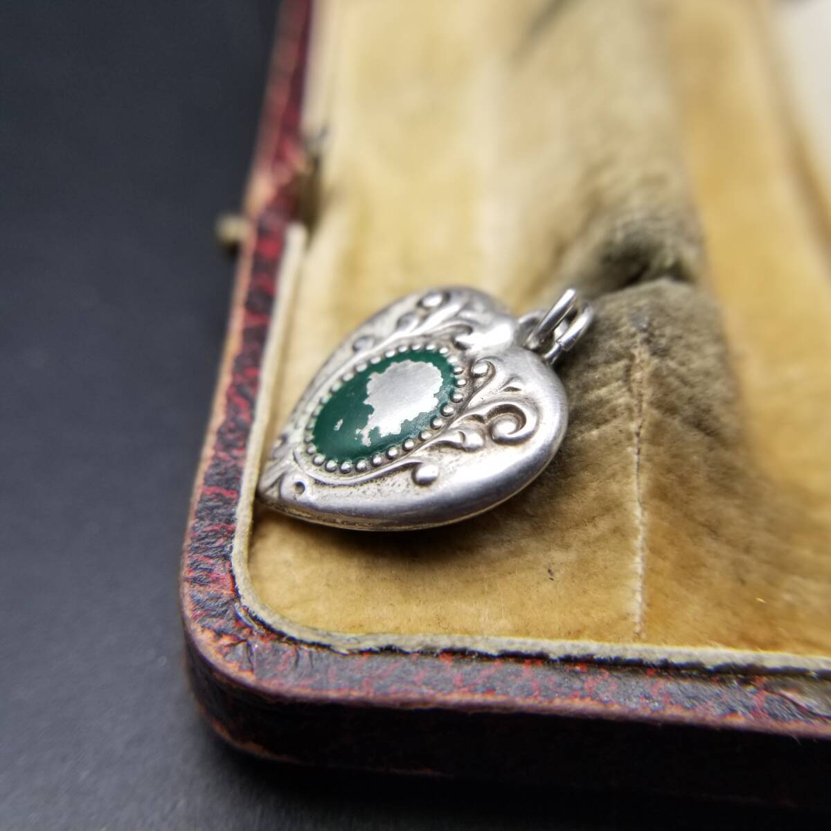 WWII期 ヴィンテージ スウィートハートジュエリー クラシック 緑エナメル チャーム 925 シルバー ペンダントヘッド 銀 ネーム彫金 Gohn Y25-D