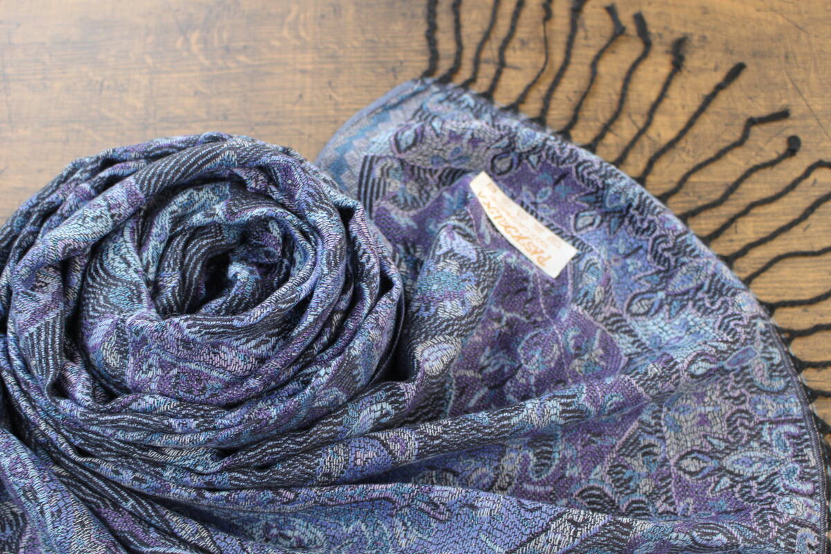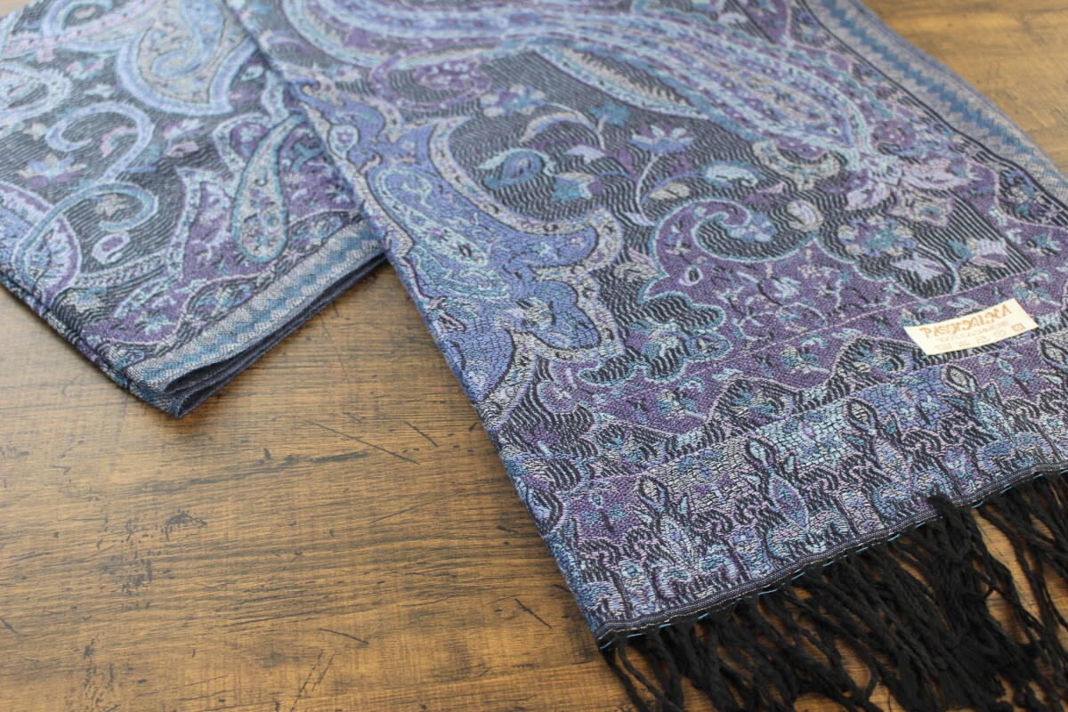 新品【パシュミナ Pashmina】ペルシャ柄 ブルーベリーカラー 大判 ストール カシミア100% Cashmere