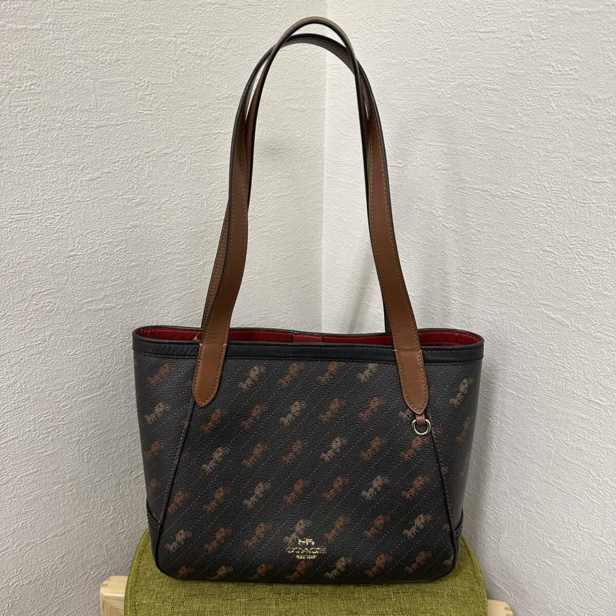 COACH コーチ ハンドバッグ ホースアンドキャリッジ 中剥げあり ブラウン×レッド 馬車 縦約22.5㎝横約27㎝マチ約11㎝ 中古品 現状品 F2937
