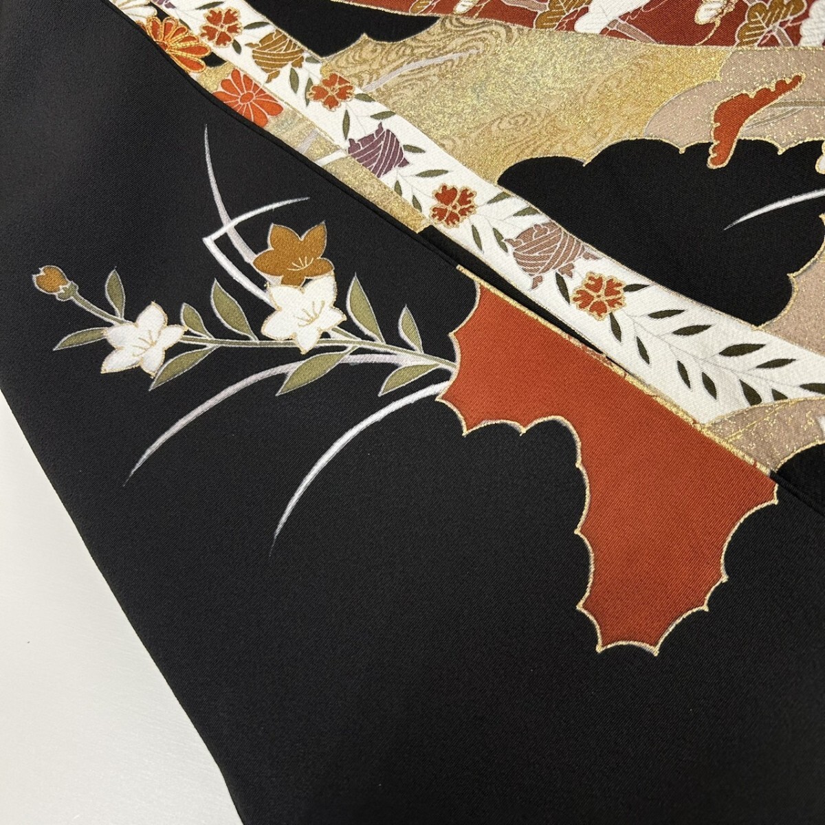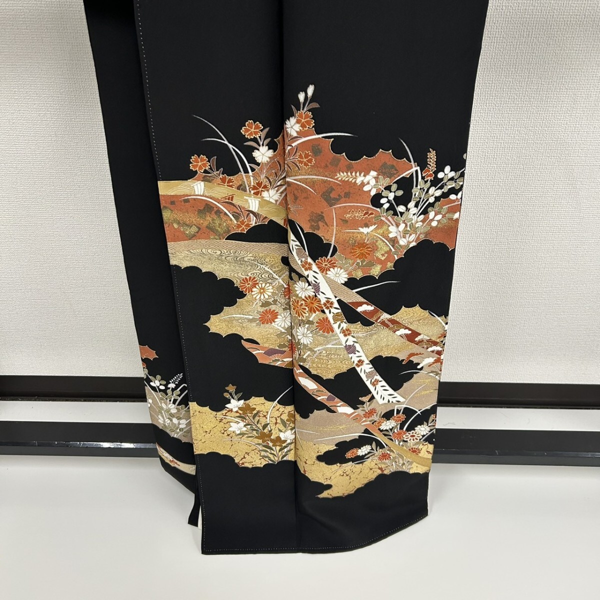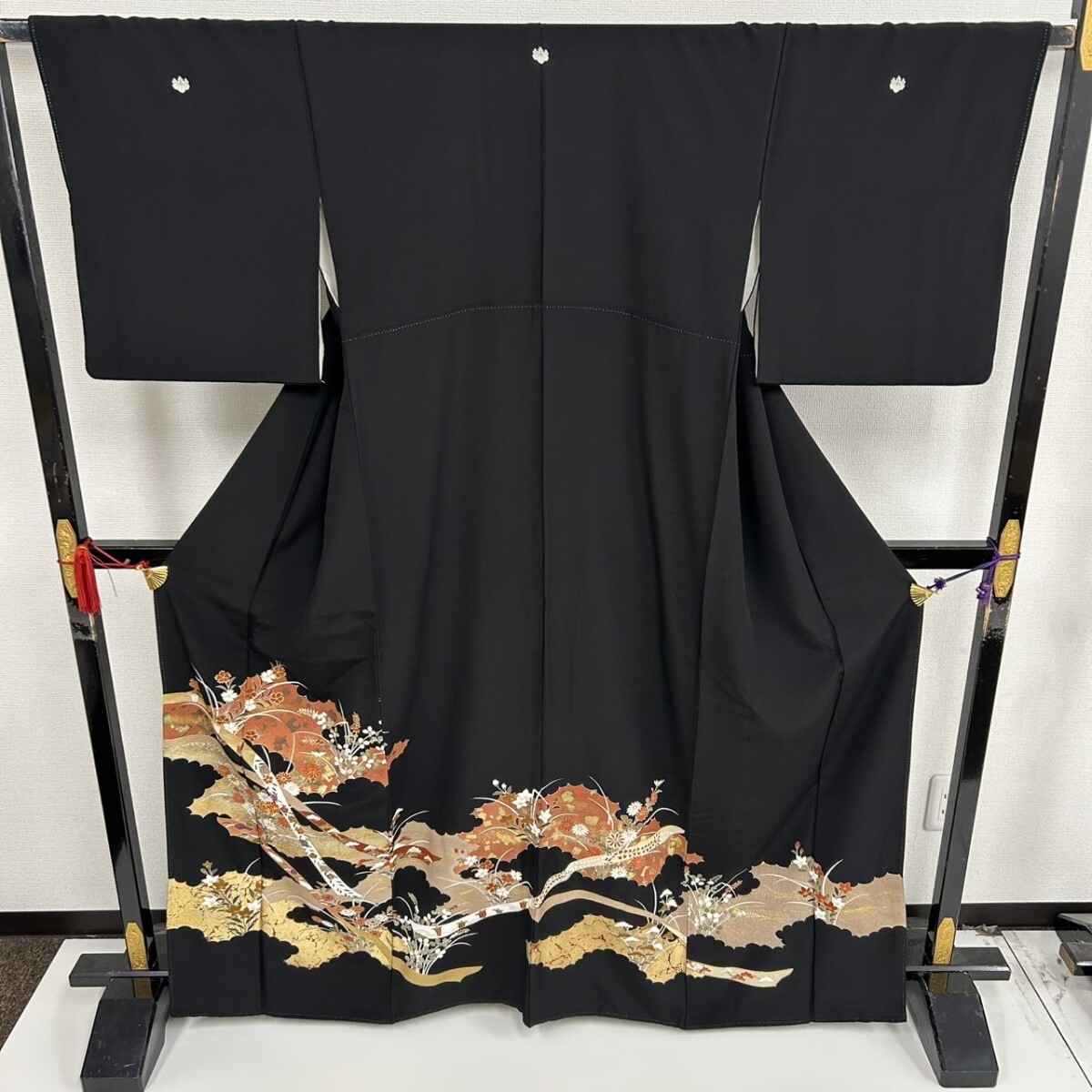 【楓】黒留袖 正絹 上品な加工 箔押し 比翼 袷 着物 KK-1029