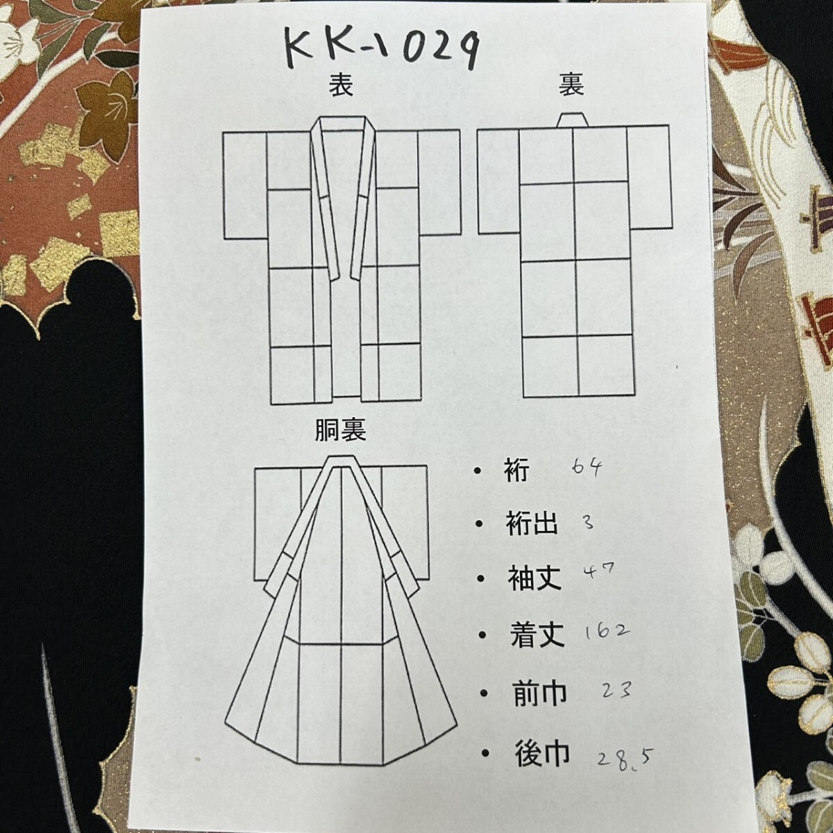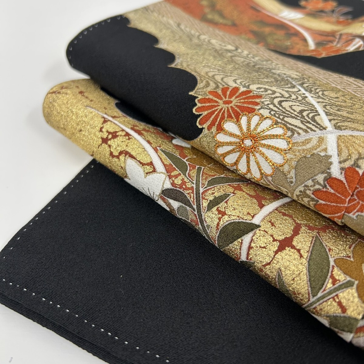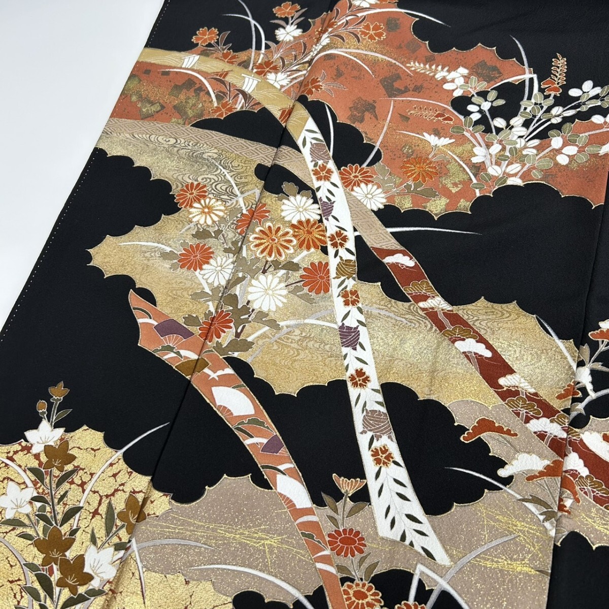 【楓】黒留袖 正絹 上品な加工 箔押し 比翼 袷 着物 KK-1029