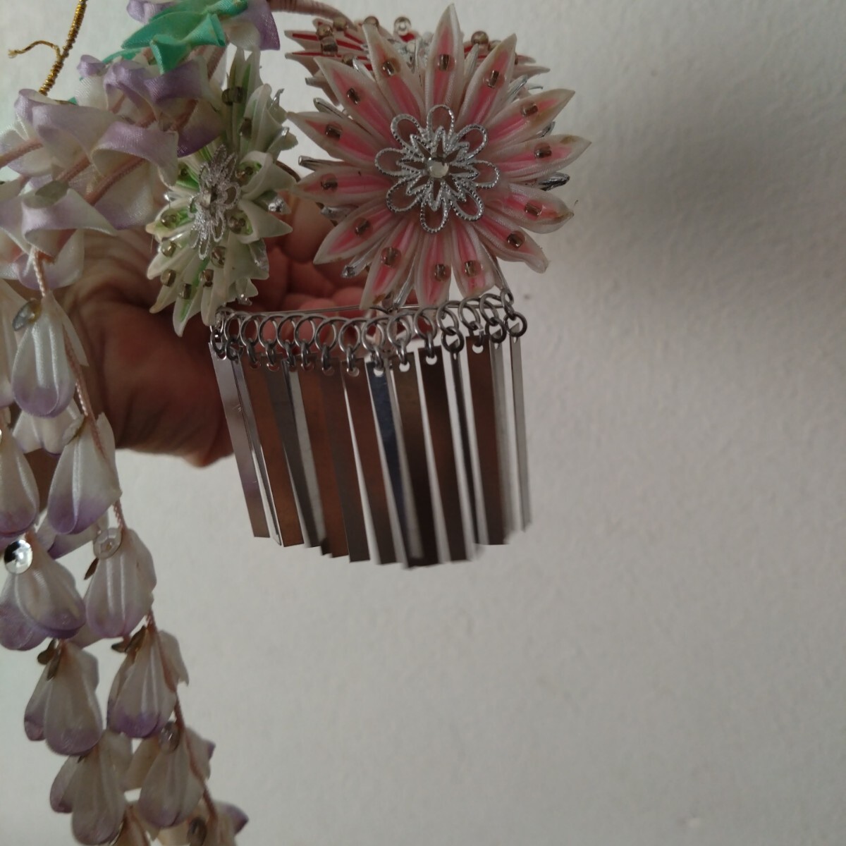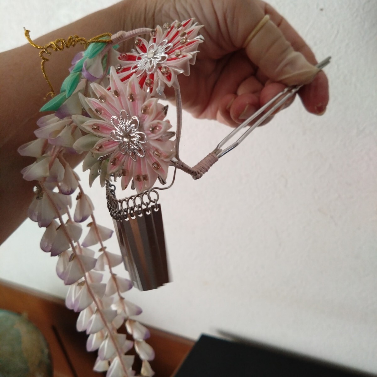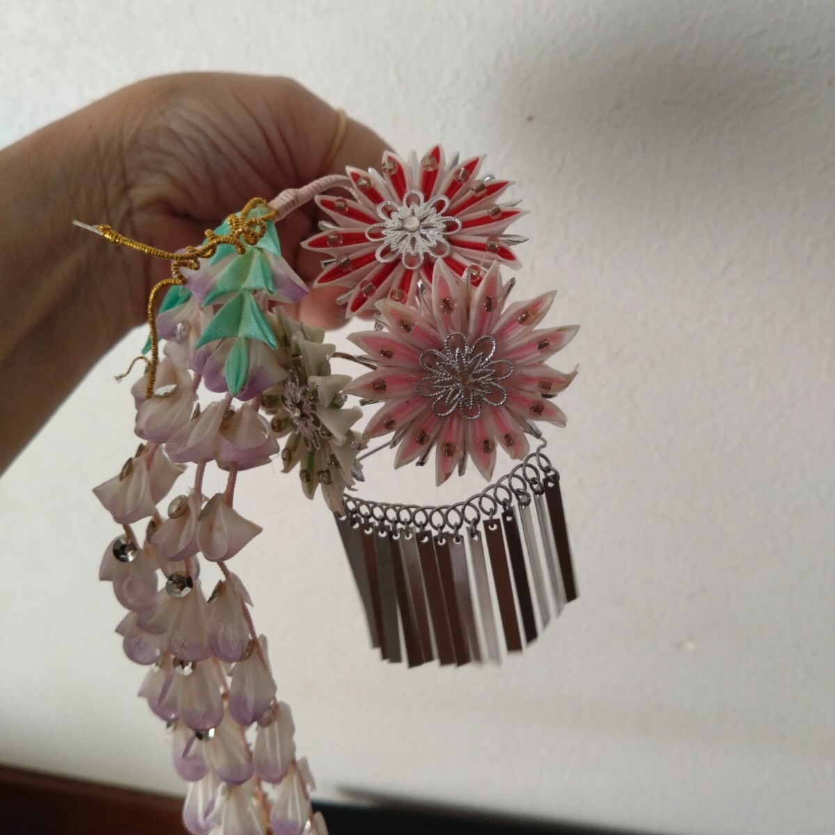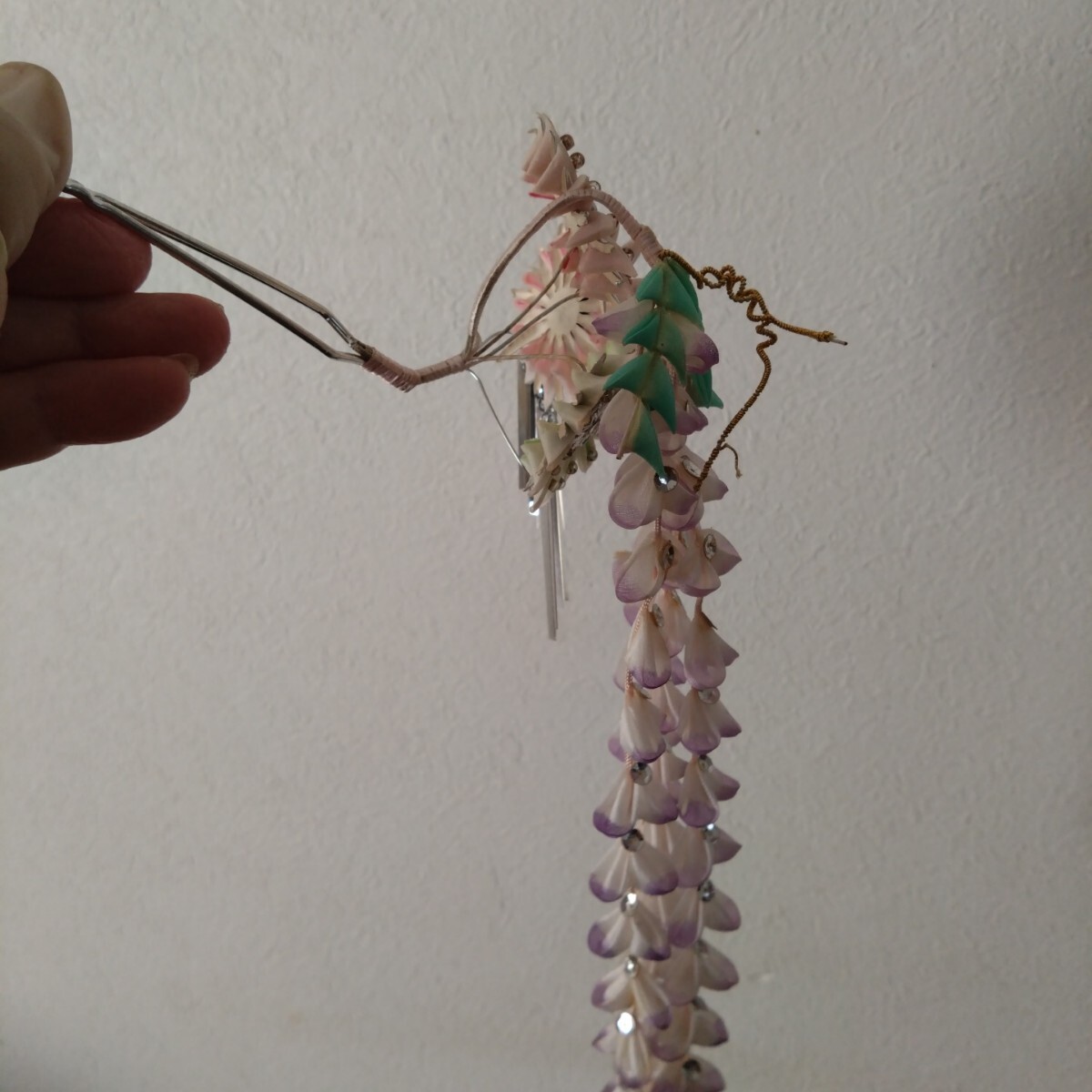 ※かんざしなどの形はある程度針金なので動かして形を整えられますが、お時間の経っているものですから経年により取れる場合もあるかと思います。銀ビラの曲がりもあります。