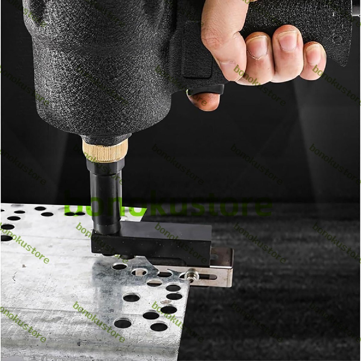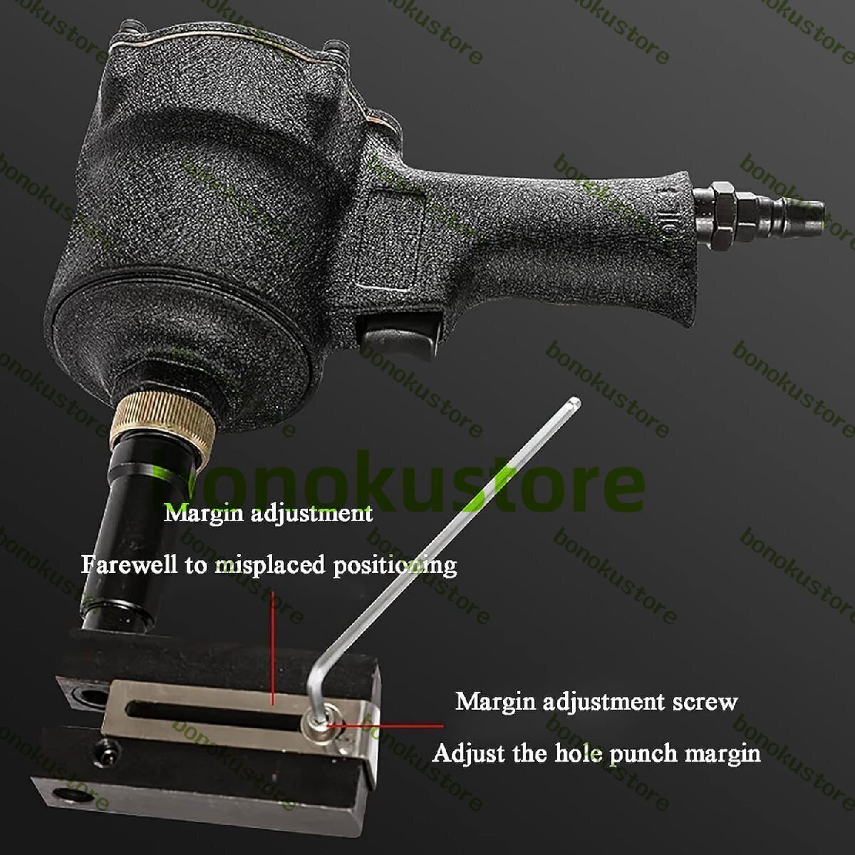 空気圧ホールパンチャー、3.2-13MMエアメタルホールパンチツール、プロフェッショナルパンチネイラー、調整可能なマージン、クランプヘッド360°回転、ドアや窓、工場、オフィス、家庭用