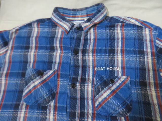 ☆人気 大きい サイズ5 BOAT HOUSE ボートハウス ネルシャツ フランネルシャツ ヘビーネル 刺繍入り ブルー系☆