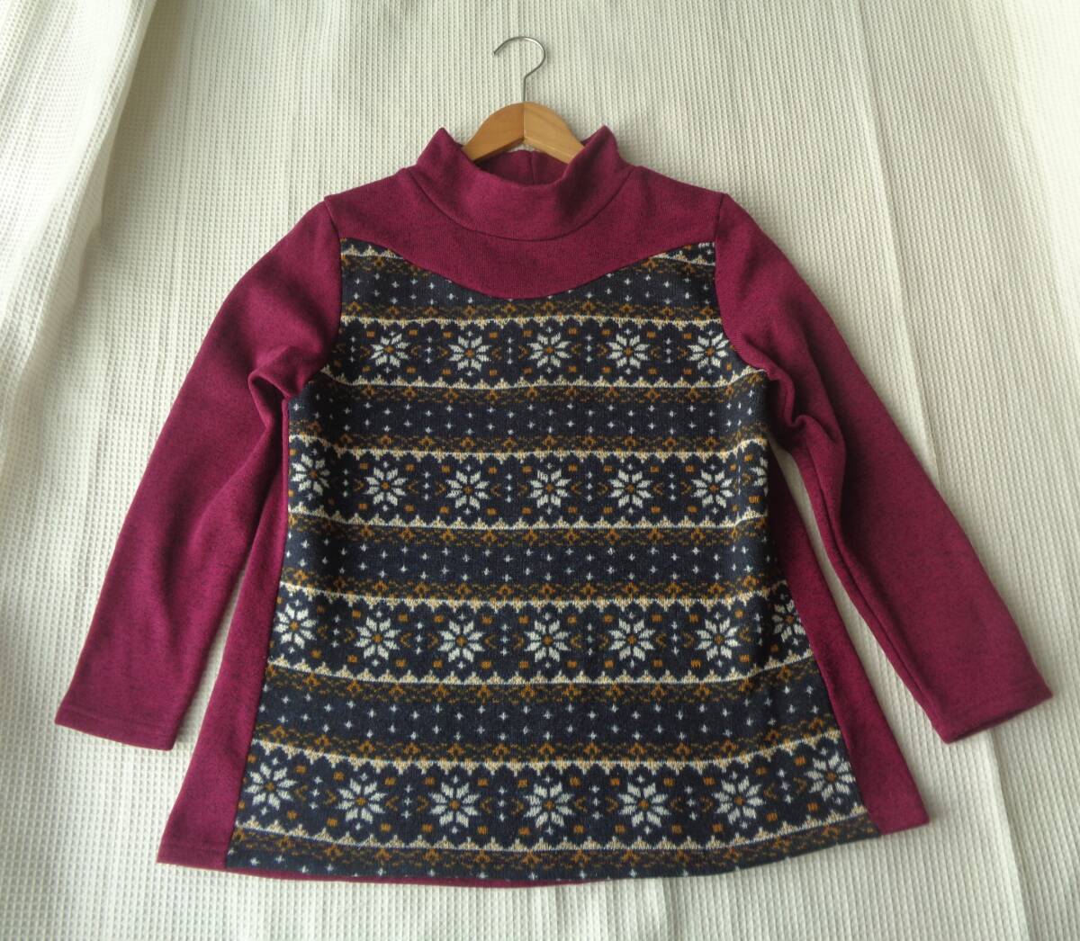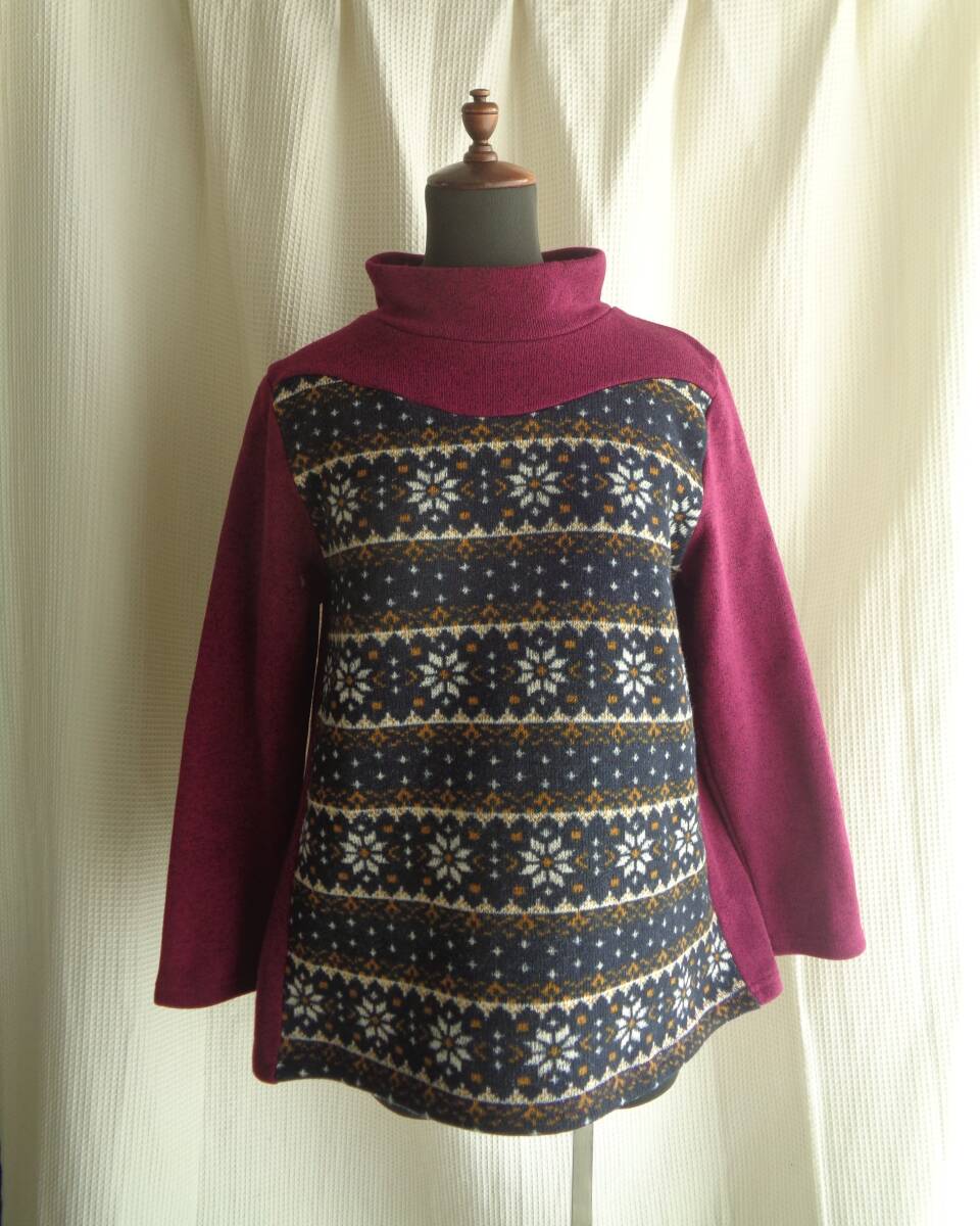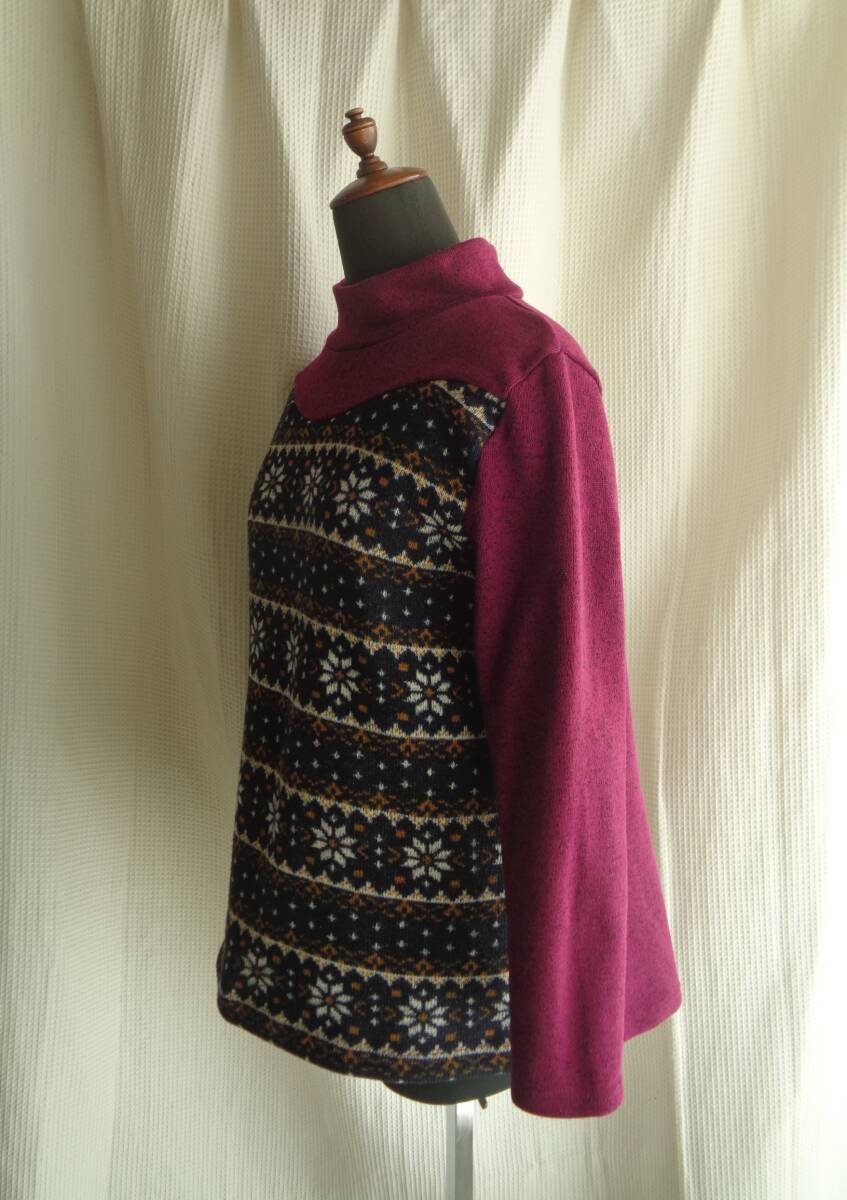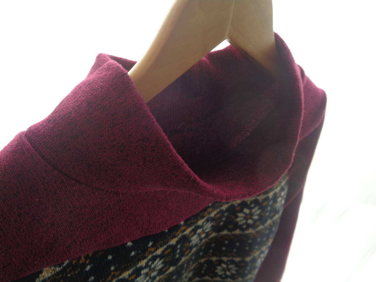 ampliar 裏起毛 切替プルオーバー 赤紫系