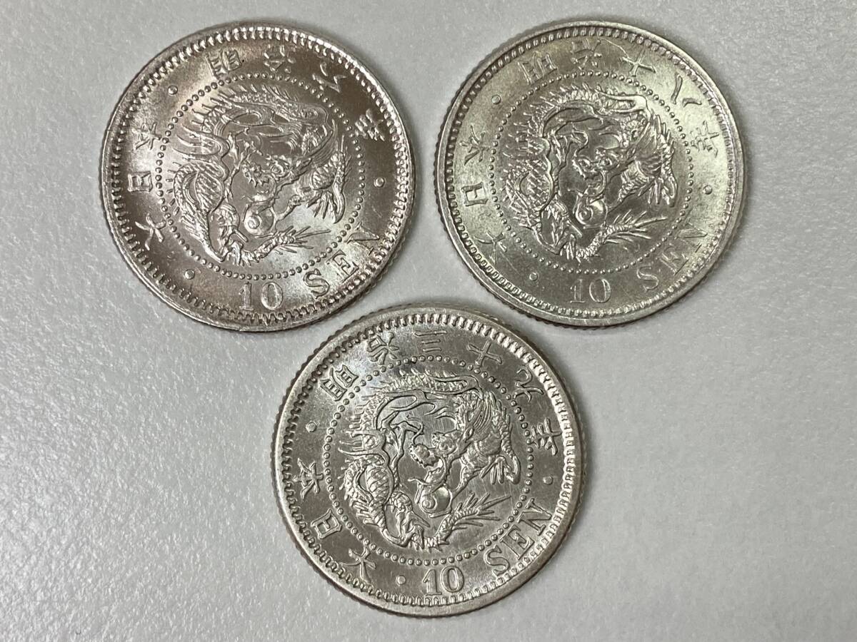 【美品】【古銭】明治6年 明治18年 明治39年 竜10銭銀貨 (明治六年 明治十八年 明治三十九年 竜 十銭 銀貨)