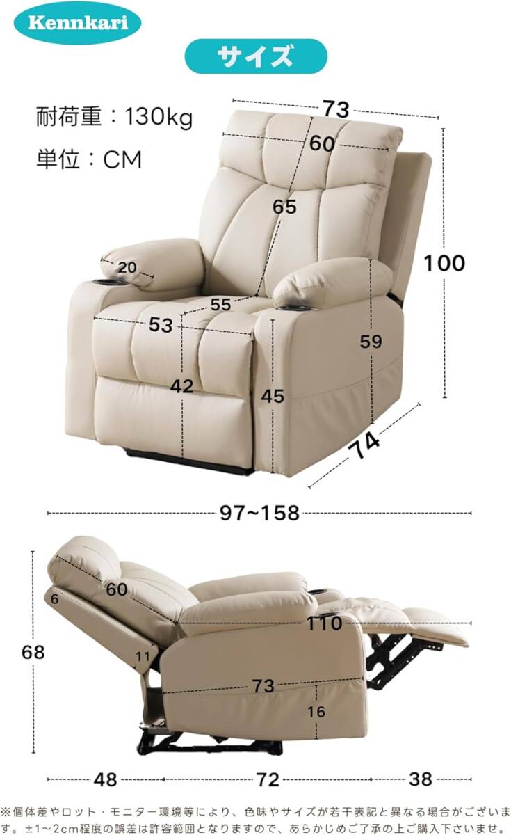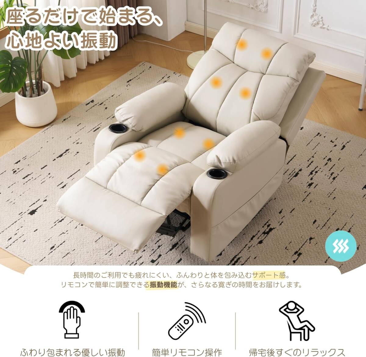 電動リクライニングソファー 振動機能 ソファ 防水性よい カップホルダー付き ボタン操作 ソファー 1人掛け USBポート付き
