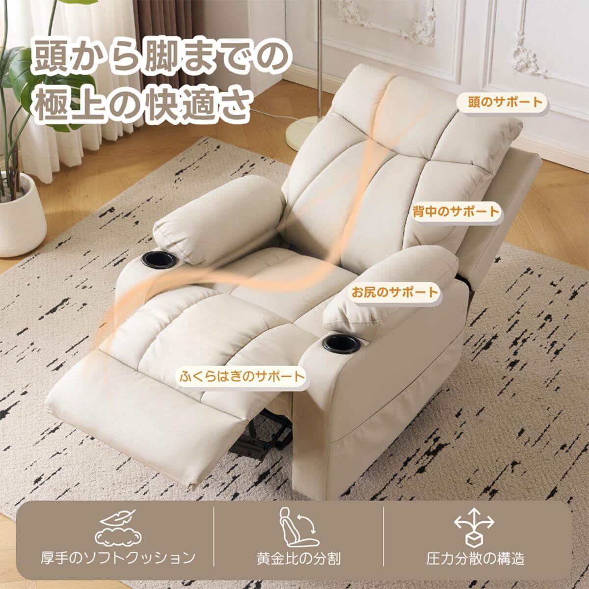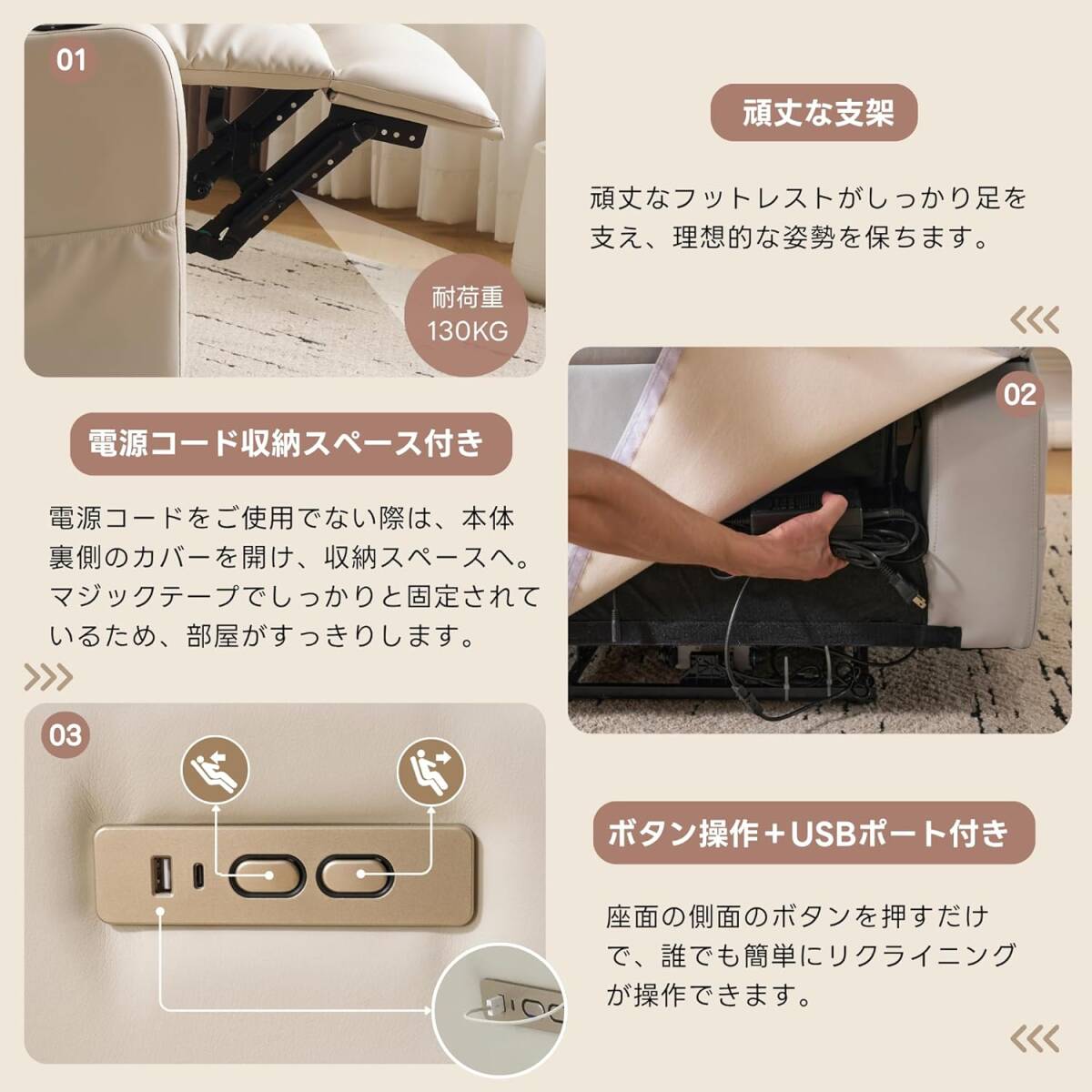 • 【便利で思いやりのあるデザイン】側面に収納ポケットが設けられており、リモコン、雑誌、本といった小物の置き場に便利で、物が手元にありやすく、周囲の環境を整然と保ちます。USB インターフェースも備えており、スマートフォン、タブレットなどの電子機器の充電が便利で、機器のバッテリー切れを心配することなく、くつろぎの時間を満喫できます。