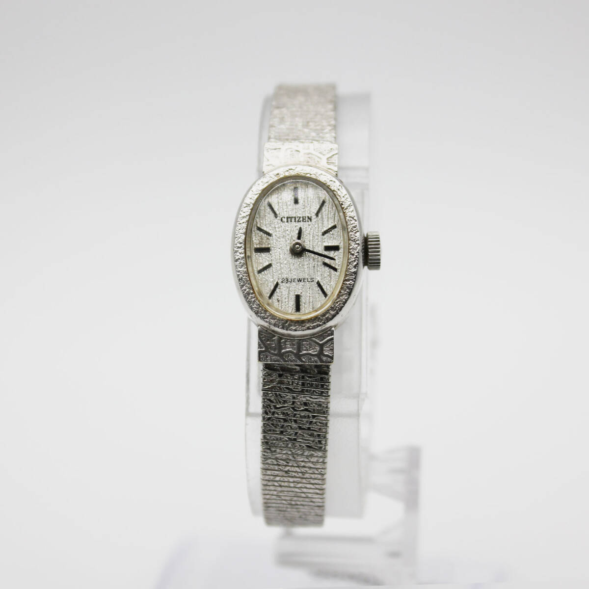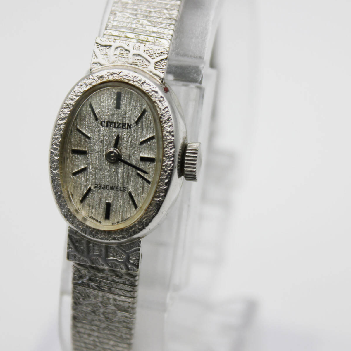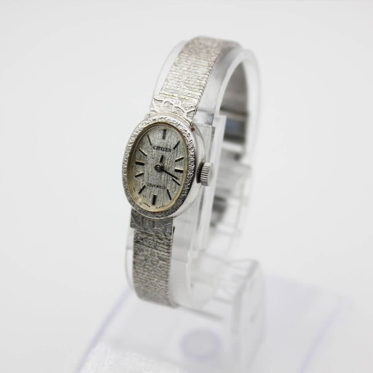 W251030-04 CITIZEN シチズン 23石 4-67O167S レディース腕時計 手巻き 稼働品 文字盤シルバー オーバル