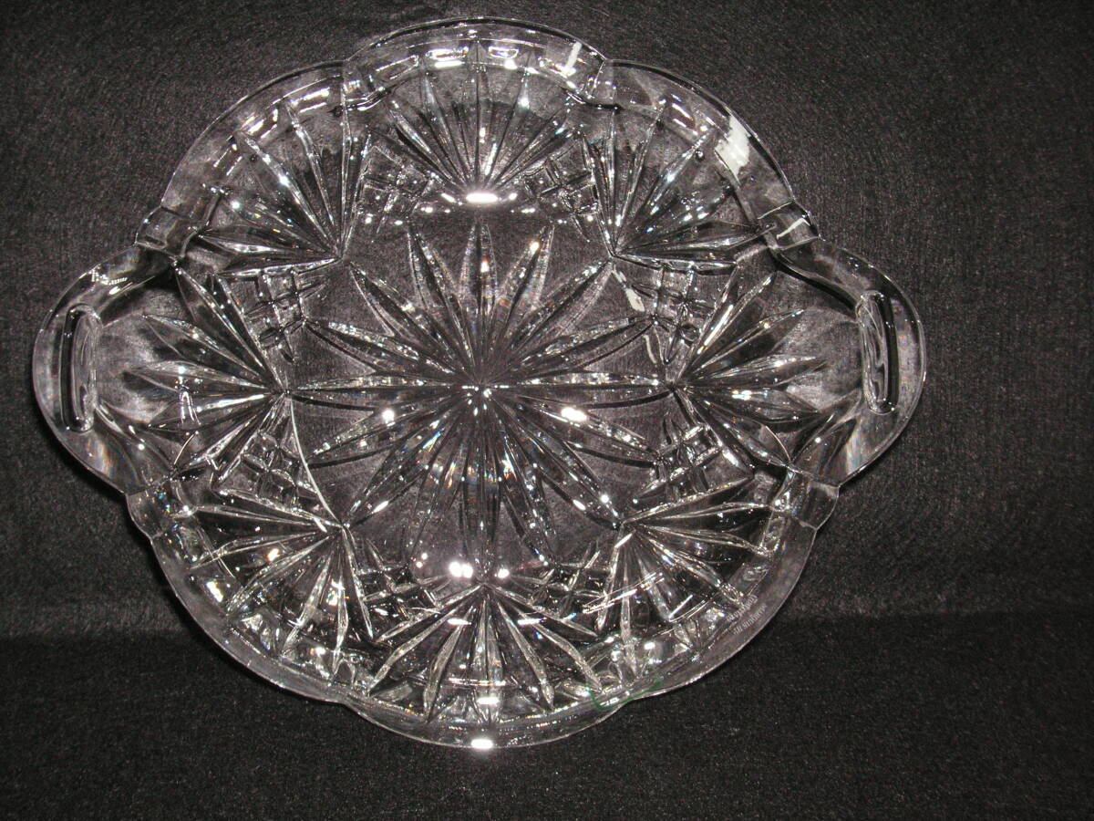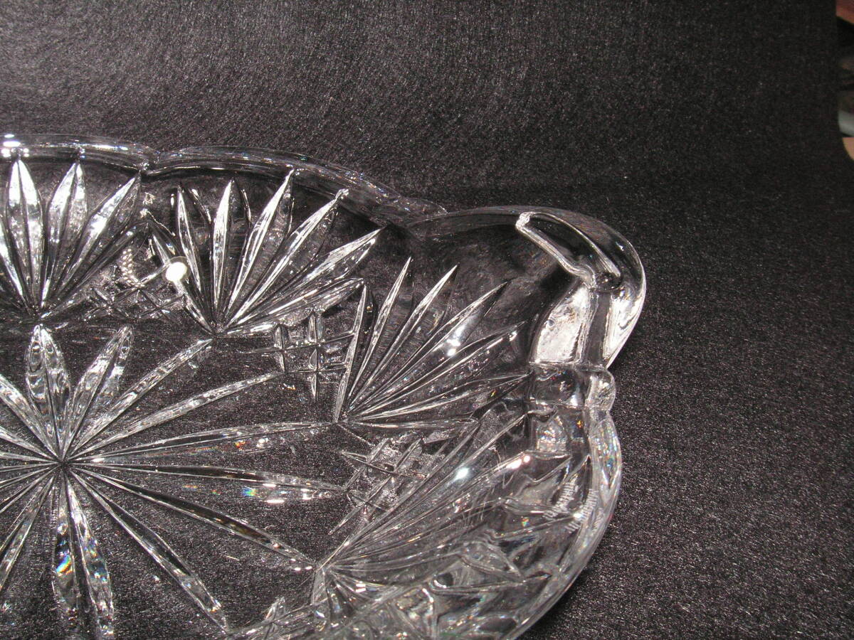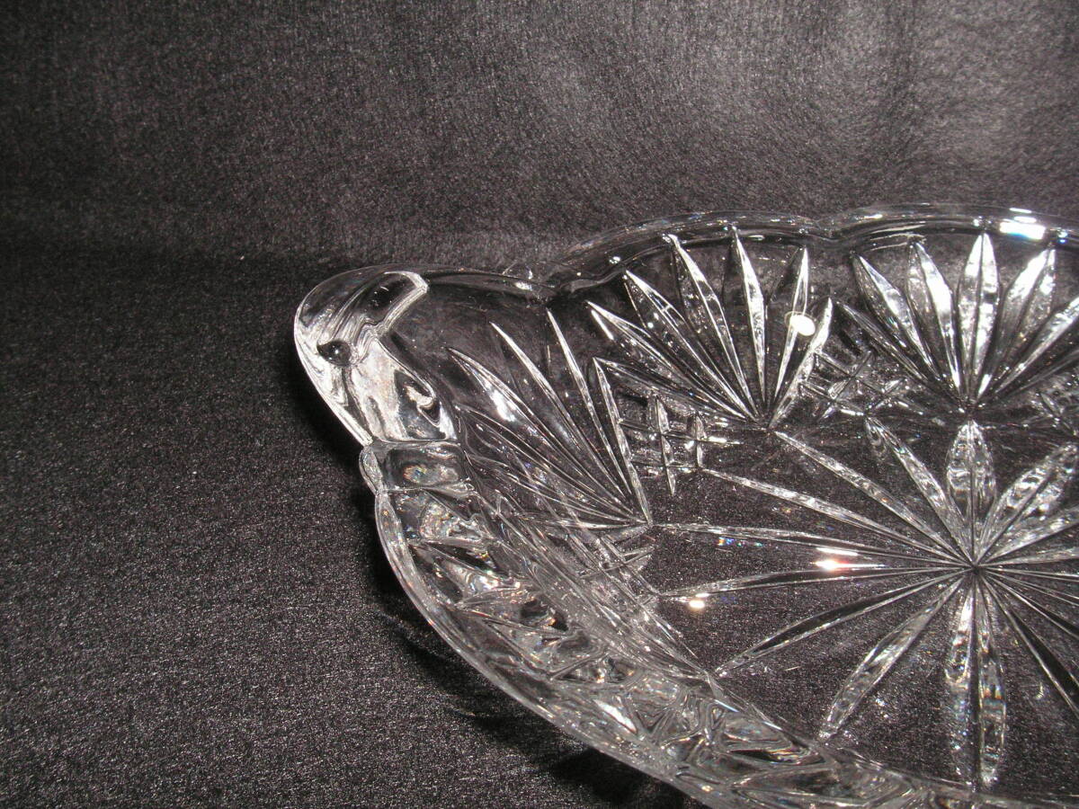 シェイプカットですっきりしたデザインが特徴のクリスタルフルーツトレイです。