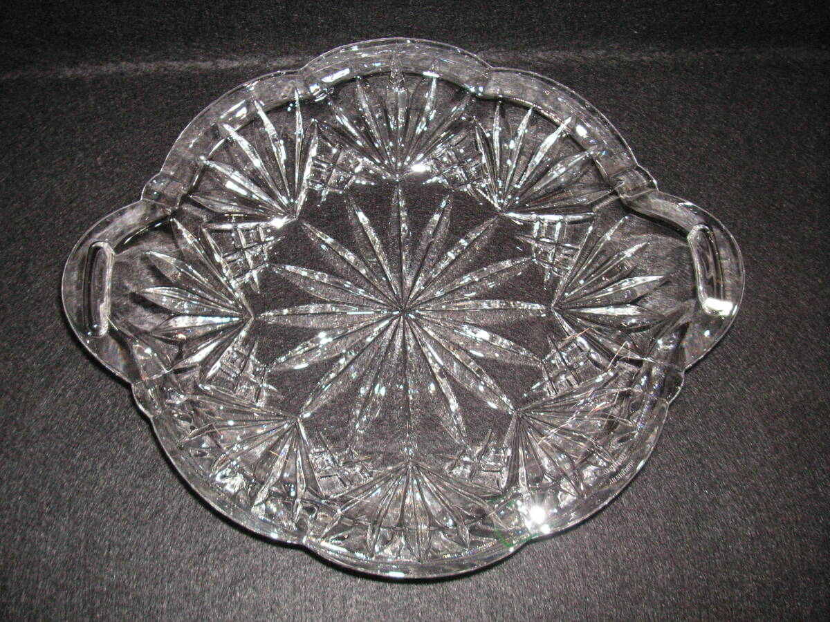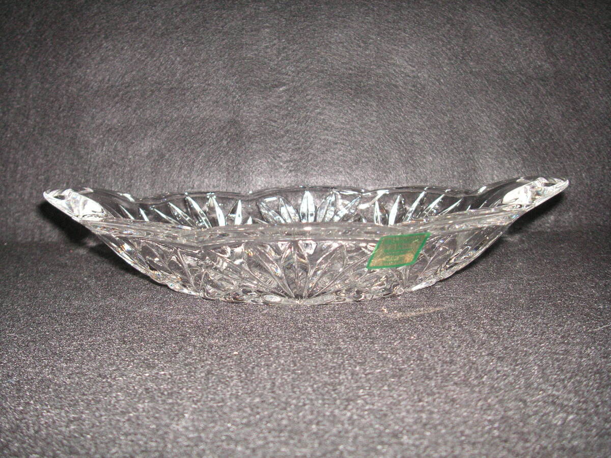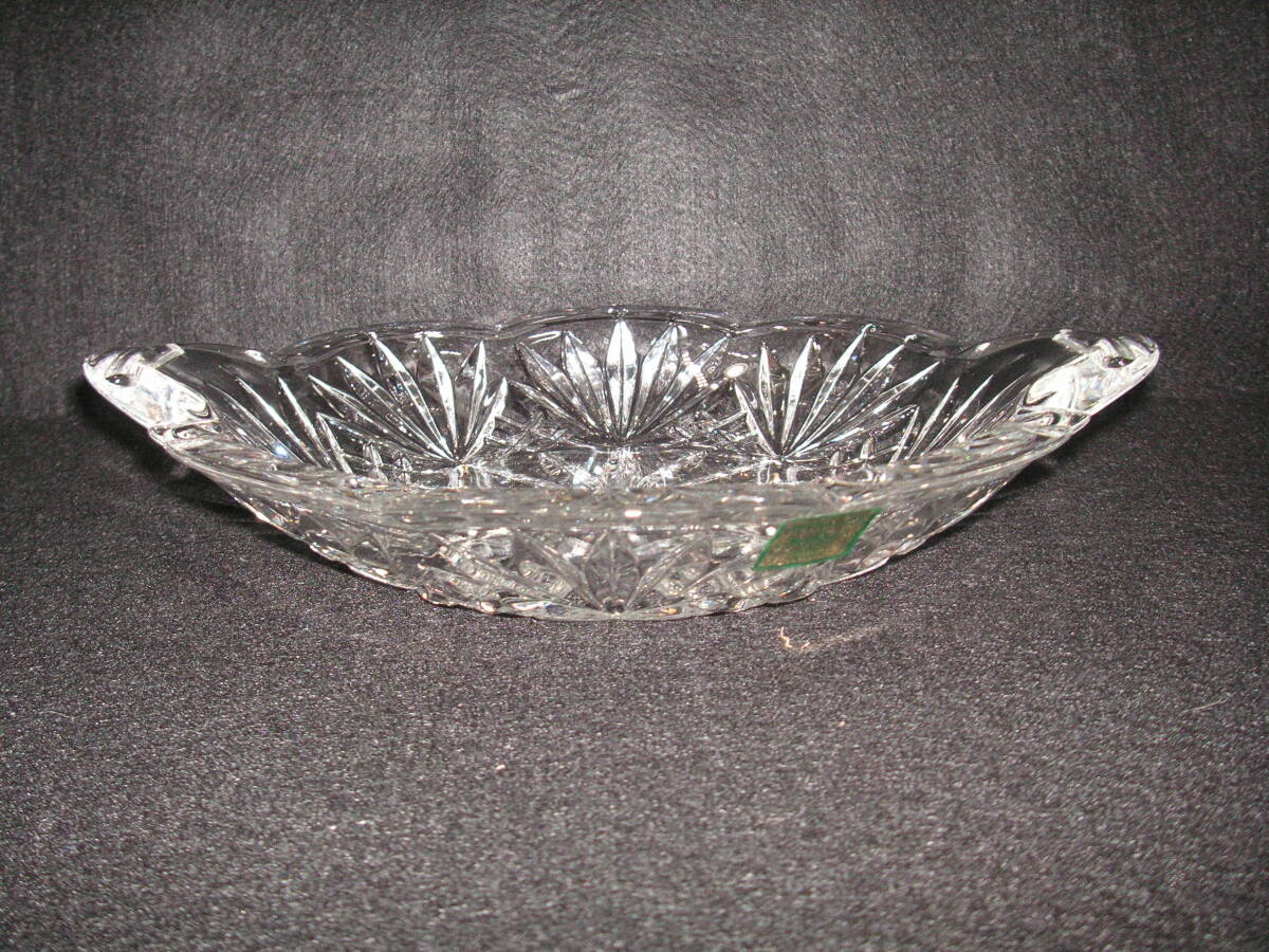 シェイプカットですっきりしたデザインが特徴のクリスタルフルーツトレイです。