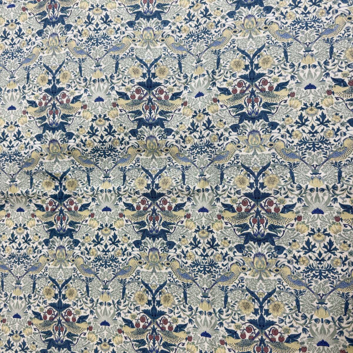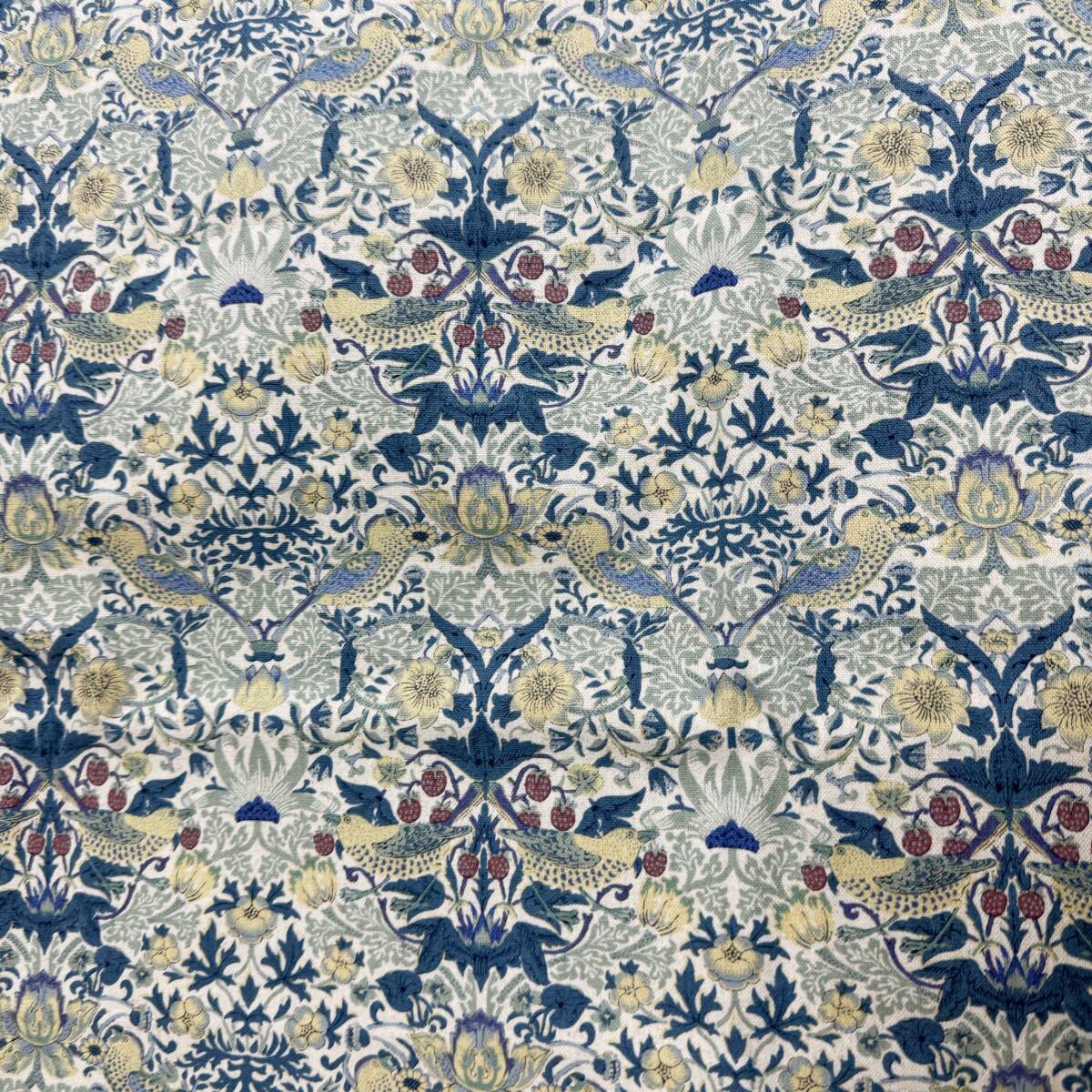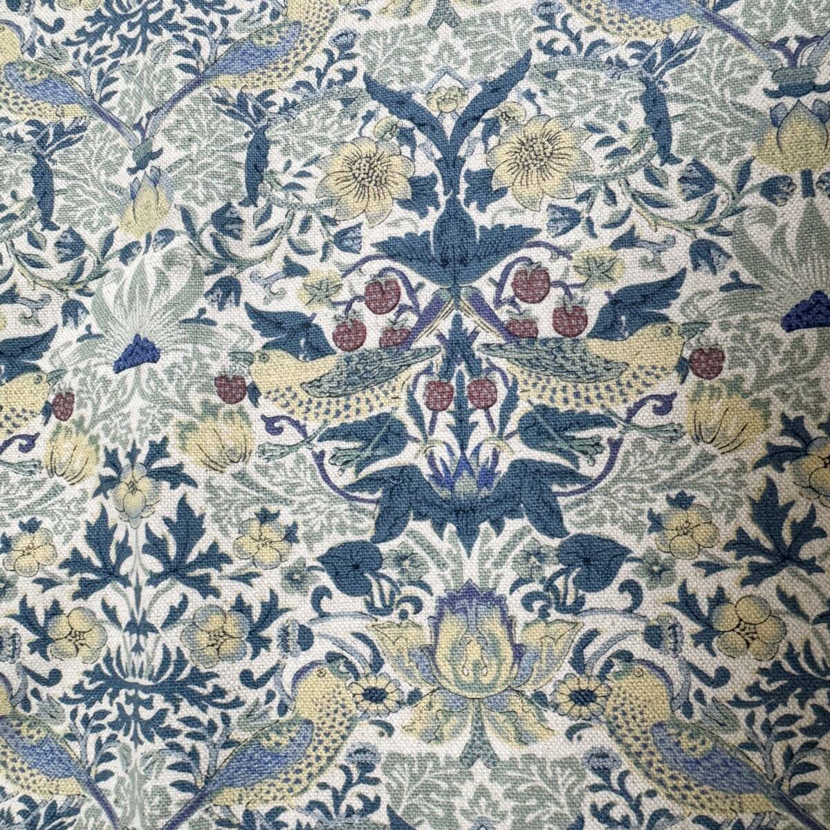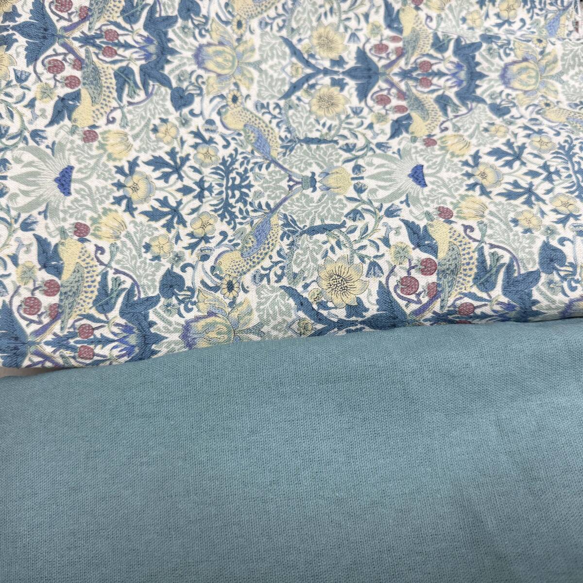 クラシカルな鳥と花柄×ブルーグリーン無地★綿麻キャンバス生地セット50cm×2枚