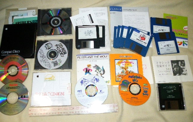 | o品名o Mac系オールド? Apple Macintosh マッキントッシュ おばあちゃんとぼくと ピーターと狼 他.CD ROM フロッピーディスクのソフト各種=まとめ売りセットで♪PC古いパソコン系 |